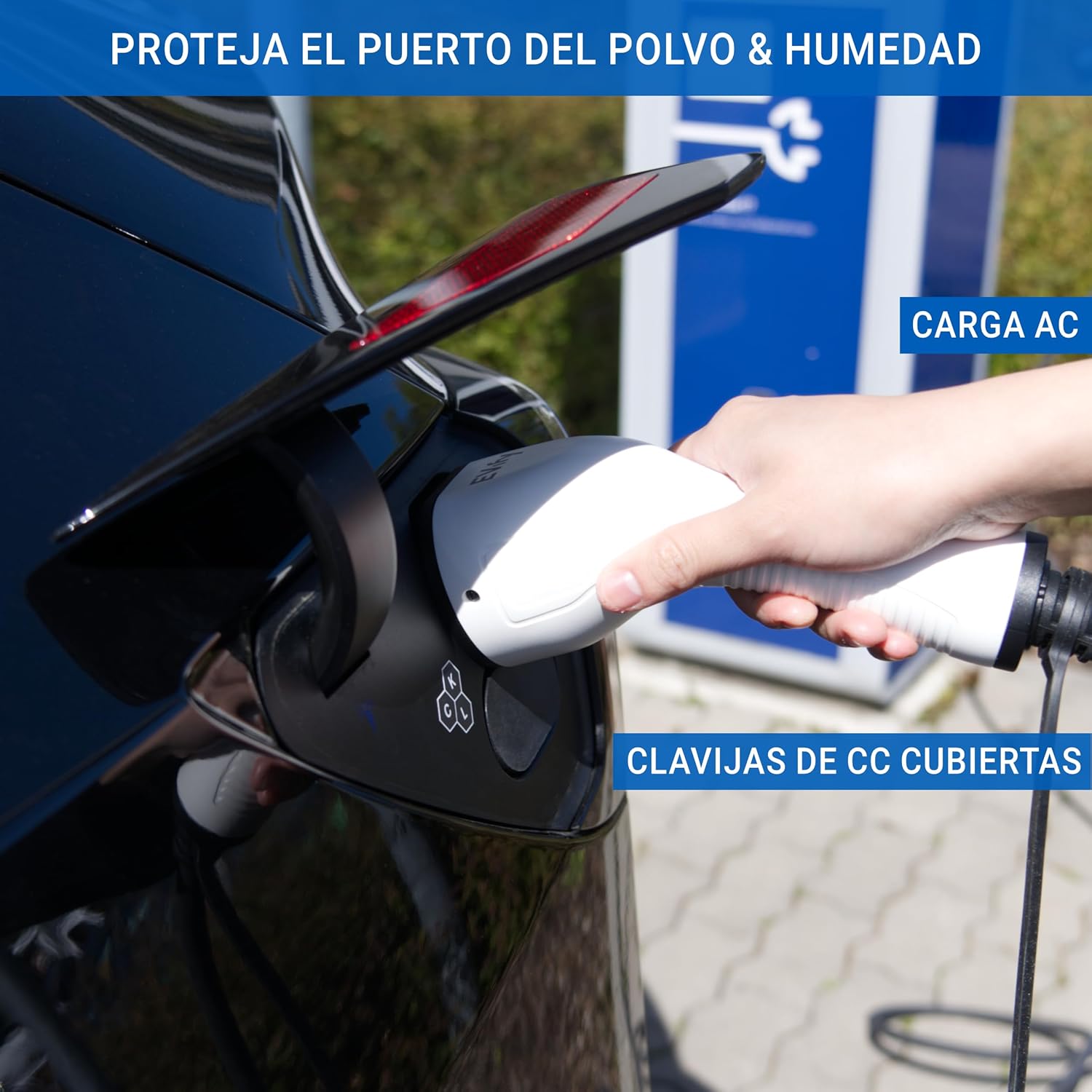 Almacenamiento para cable de tipo 2 con enrollador de cable Protección contra la intemperie para el puerto de carga Fácil & rápido de quitar Apto para todos los cables comunes de tipo 2