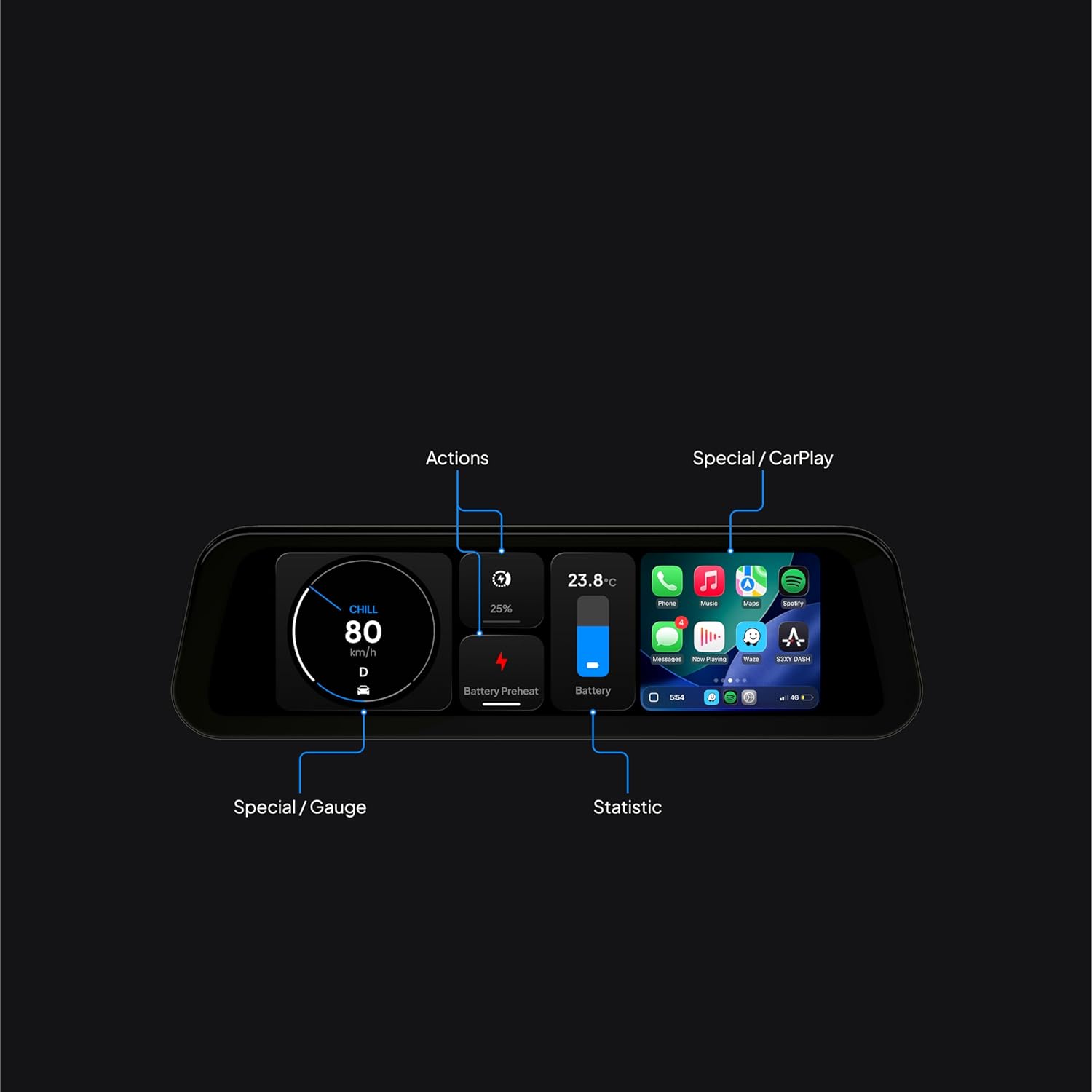 S3XY Dashboard for Tesla (Head-up, CarPlay, Android Auto) (Includes Commander, Model Y Juniper)