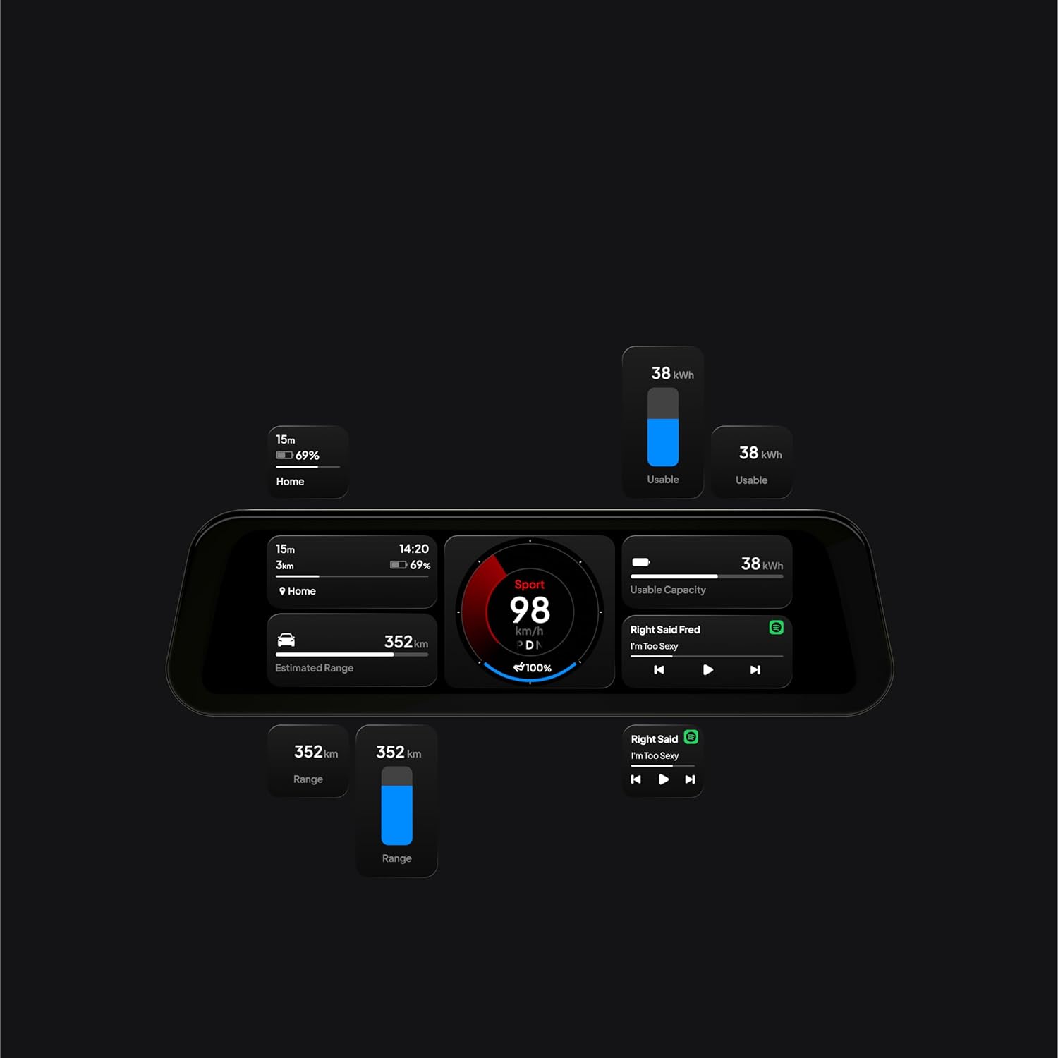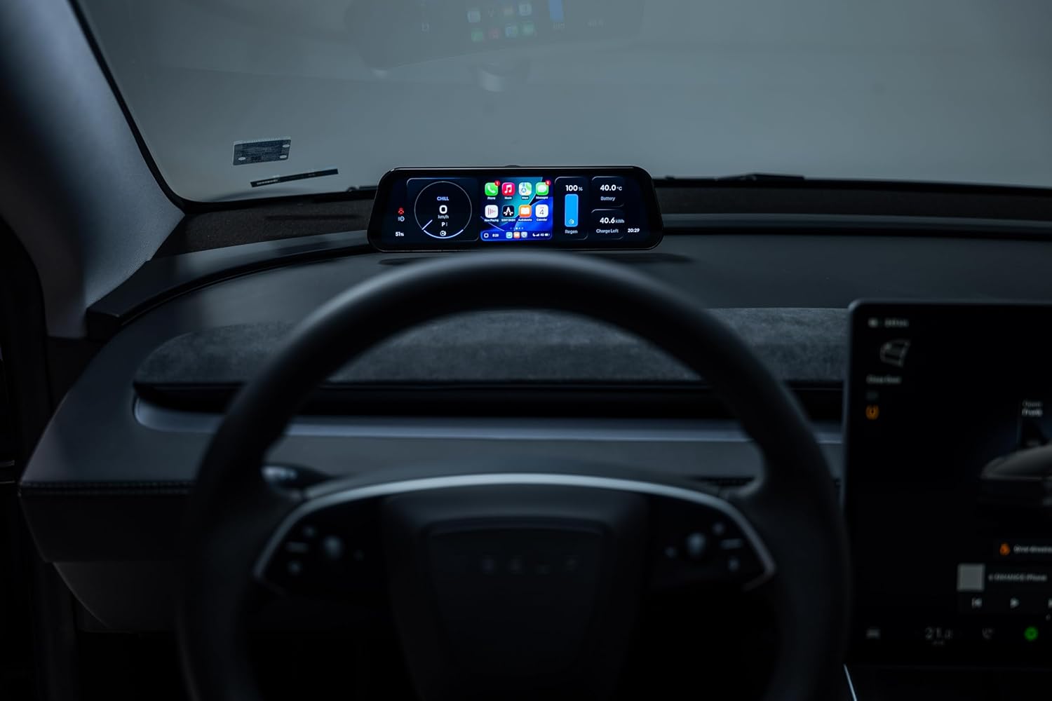 Enhance S3XY Dash – The Fully Customizable Tesla Instrument Cluster The Enhance S3XY Dash is a cutting-edge smart instrument for Tesla Model 3 and Model Y (including Legacy, Highland and Juniper) that takes your driving experience to a whole new level. With a large 9.6-inch touchscreen display, experience all important vehicle data and entertainment functions centralized in your field of view, intuitive, ultra-fast and fully customizable. Key features at a glance: Apple CarPlay and Android Auto Support – Access navigation, music, messaging and apps directly from the dashboard screen. Control 50+ Vehicle Functions – Start battery preconditioning, adjust recovery, or use more touch comfort features. Comprehensive vehicle data monitoring: keep speed, travel statistics, pump and battery values and many more telemetry data live. Full screen customization: Design layouts, widgets, display sizes, and positions based on your driving style. Upgrades over the air (OTA): New features and improvements arrive automatically, no need to visit the shop. Perfect integration: Smart & Easy The Enhance S3XY Dash is designed specifically for Tesla vehicles and integrates seamlessly into the interior. The included MagSafe tripod allows for easy and flexible positioning of the screen, either as a classic combo instrument behind the wheel or as a front rear windshield display. Depending on the variant, the Dash can be ordered individually or together with the Gen2 Commander, the latter is a prerequisite for the full functionality of the system. Why Enhance S3XY Dash? Maximum view and control of your Tesla vehicle Modern UI design and intuitive handling Perfect complement to Tesla CarPlay and Android car functions Regular updates to keep your software up to date