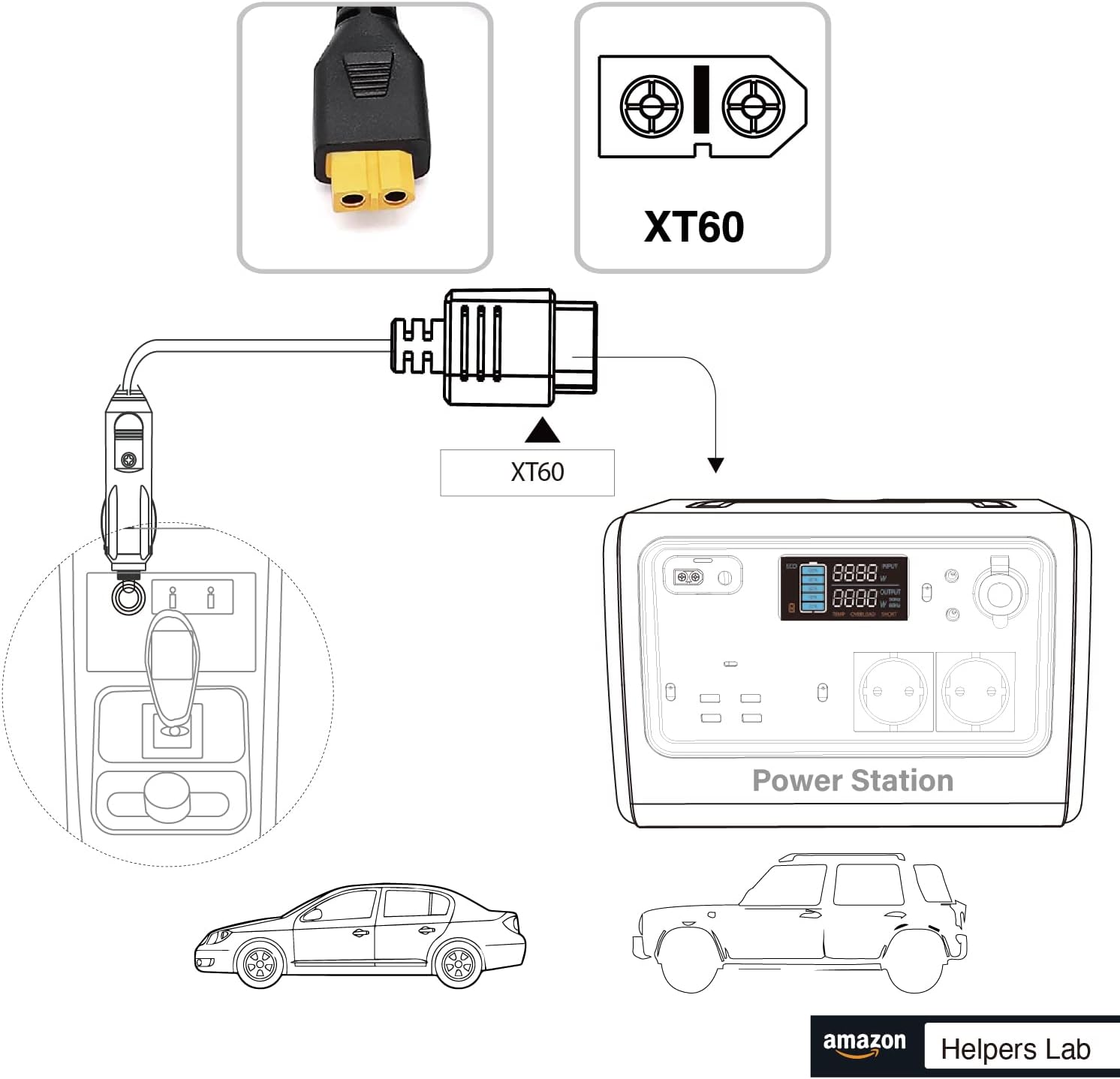 El cargador de coche tiene un conector XT60 y es perfectamente compatible con BLUETTI EB55 EcoFlow DeltaMini、Delta、Delta Pro、DeltaMax、River 288Wh、River Pro、River Max、River Mini、etc PowerStation Power Station