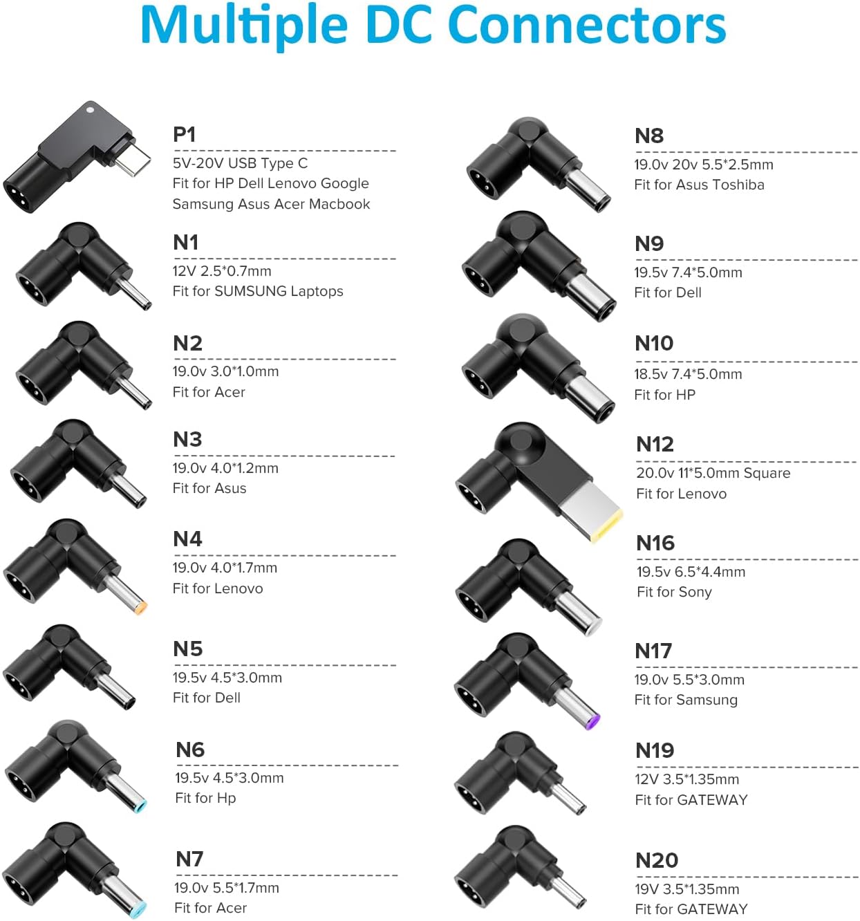 Contenido del paquete: 1 cargador de automóvil para computadora portátil, 1 juego de puntas de conector, 1 garantía global sin preocupaciones de 12 meses.