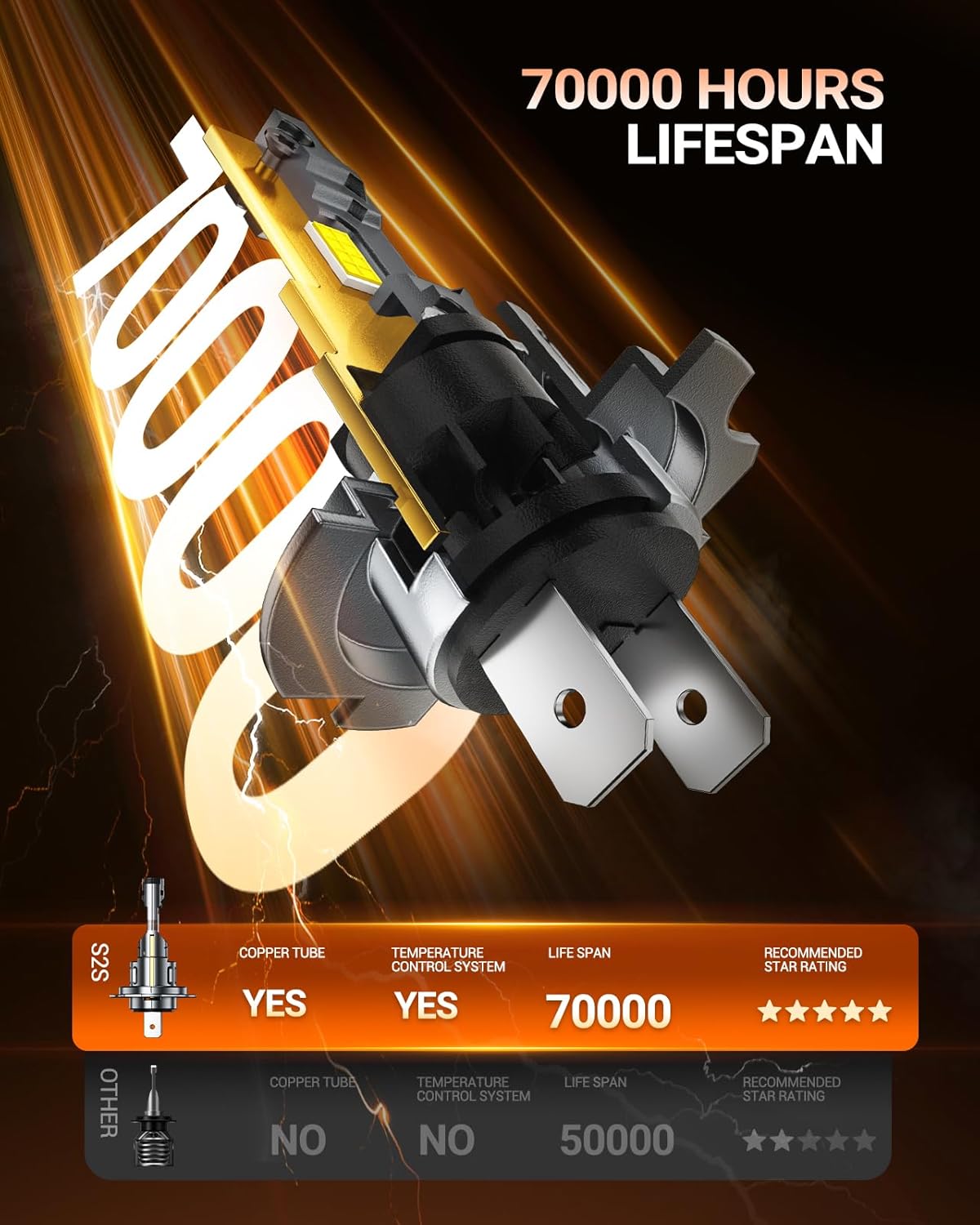 50000+ Hours Lifespan: Heat dissipation determines the service life. Thanks to the 25,000 rpm cooling fan and the unique copper tube, the temperature of the bulb is greatly reduced during operation. If you drive for 10 hours every night, you can use it for more than 10 years.