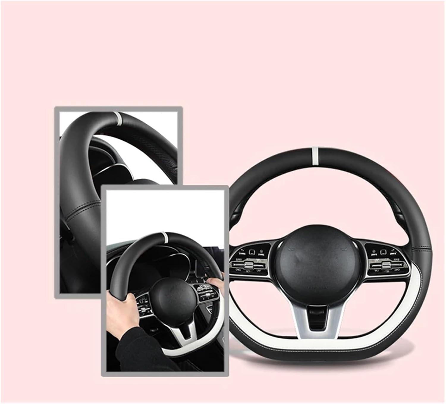 Two-tone design: the steering wheel cover adopts a two-tone design, bringing it a certain sophistication. Careful stitching enhances the overall beauty and durability of the product.