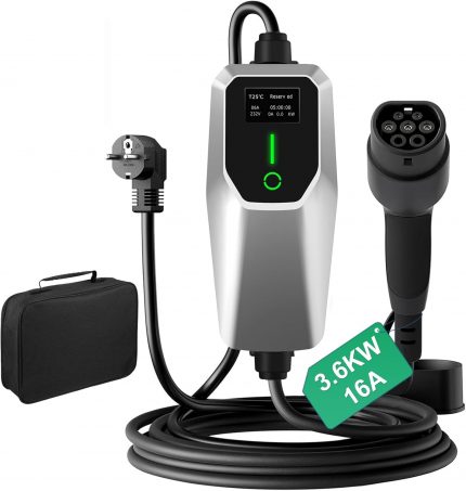 Hexinex Cargador portátil tipo 2 EV 3.6KW Corriente ajustable 8A-16A Estación de carga para vehículos eléctricos 240V Voltaje doméstico Compatible con pantalla LED digital y bolsa