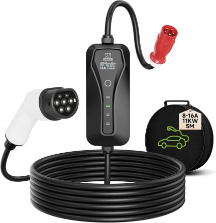 AFYEEV Cargador de Coche Eléctrico 6M 7,2kW, Cargador de Coche Eléctrico con Corriente Ajustable 6/8/10/13/16/20/24/32A, Negro (IEC 62196-2)