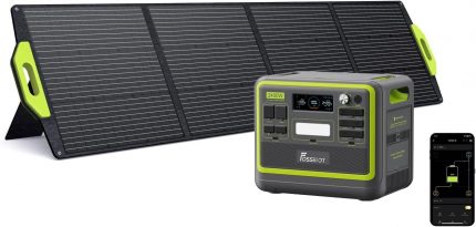 FOSSiBOT F2400 Generador solar portátil, panel solar de 200 W, batería LiFePO4 de 2048 Wh, salida 2400 W CA (pico de 4800 W), carga del 80% en 1,5 horas, estación de energía portátil para acampar, viajar
