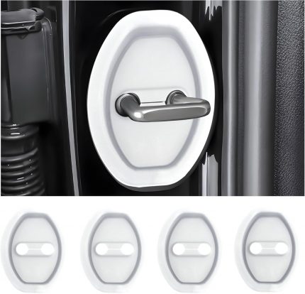 4 Pieces Car Door Protector for Latch Lock, Silicone Protector Door Car Decoration, Self-Adhesive Protector Car Accessories for Car, Truck, SUV (White)