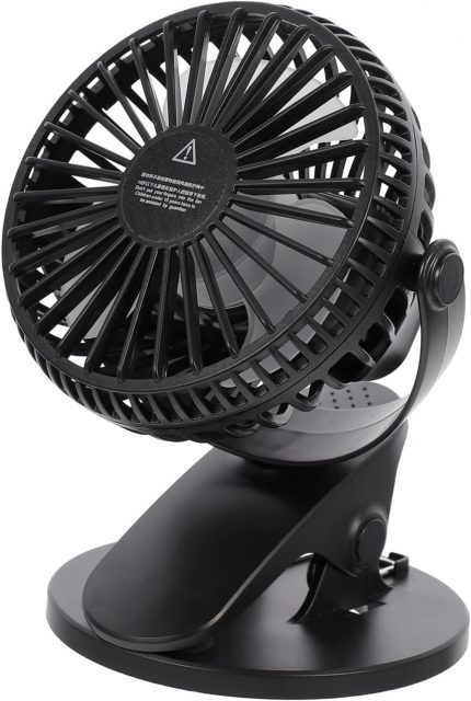 TOTMOX Ventilador de aire de refrigeración portátil, giratorio de 360 grados, mini ventilador de clip para cochecito, circulador de aire de refrigeración eléctrico, carga USB para todos los coches