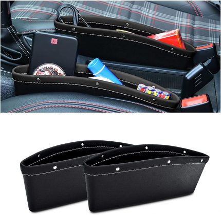 CGEAMDY Car Seat Space, Side Pocket Organizer Car Seat Side Gap Filler for Mobile Phones Keys Cards Wallets Coins with Universal Fit (Black)