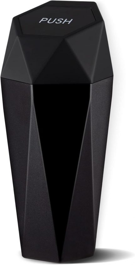 JUSTTOP Car Trash Can with Lid, Diamond Design, Small Auto Portable Trash Can, Easy to Clean, Used in Car, Home Office (Black)