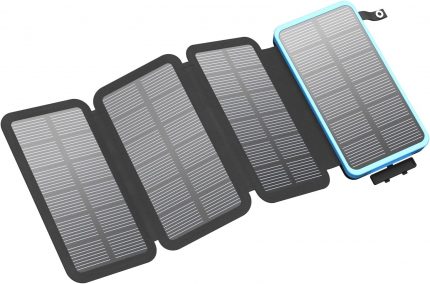 Cargador-Solar-Power-Bank-27000mAh – 22,5W Carga Rápida USB-C Batería Externa Inalámbrica con 3 Salidas USB PD 4.0 QC 3.0 y 4 Paneles Solares para Smartphones Tablets