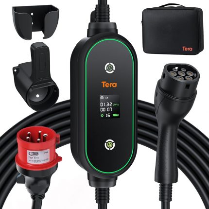 Tera Mobile Wallbox Tipo 2 portátil: 11 kW 3 Fases 6-16 A Cable de Carga de 7,5 m CEE 5 Pines Cargador EV 0,5-5h Potencia de Carga Retardada Soporte de Carga Ajustable Cargador para Coche Eléctrico P03