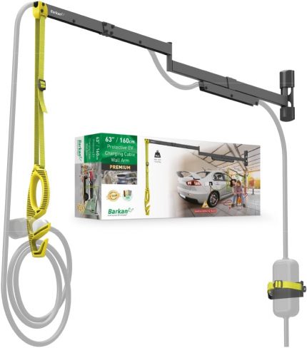 Barkan Brazo Protector de Pared para Cable Cargador de Coche Eléctrico 160 cm, con 5 Años de Garantía, Zincado Impermeable para Interior y Exterior, Vehículo Eléctrico
