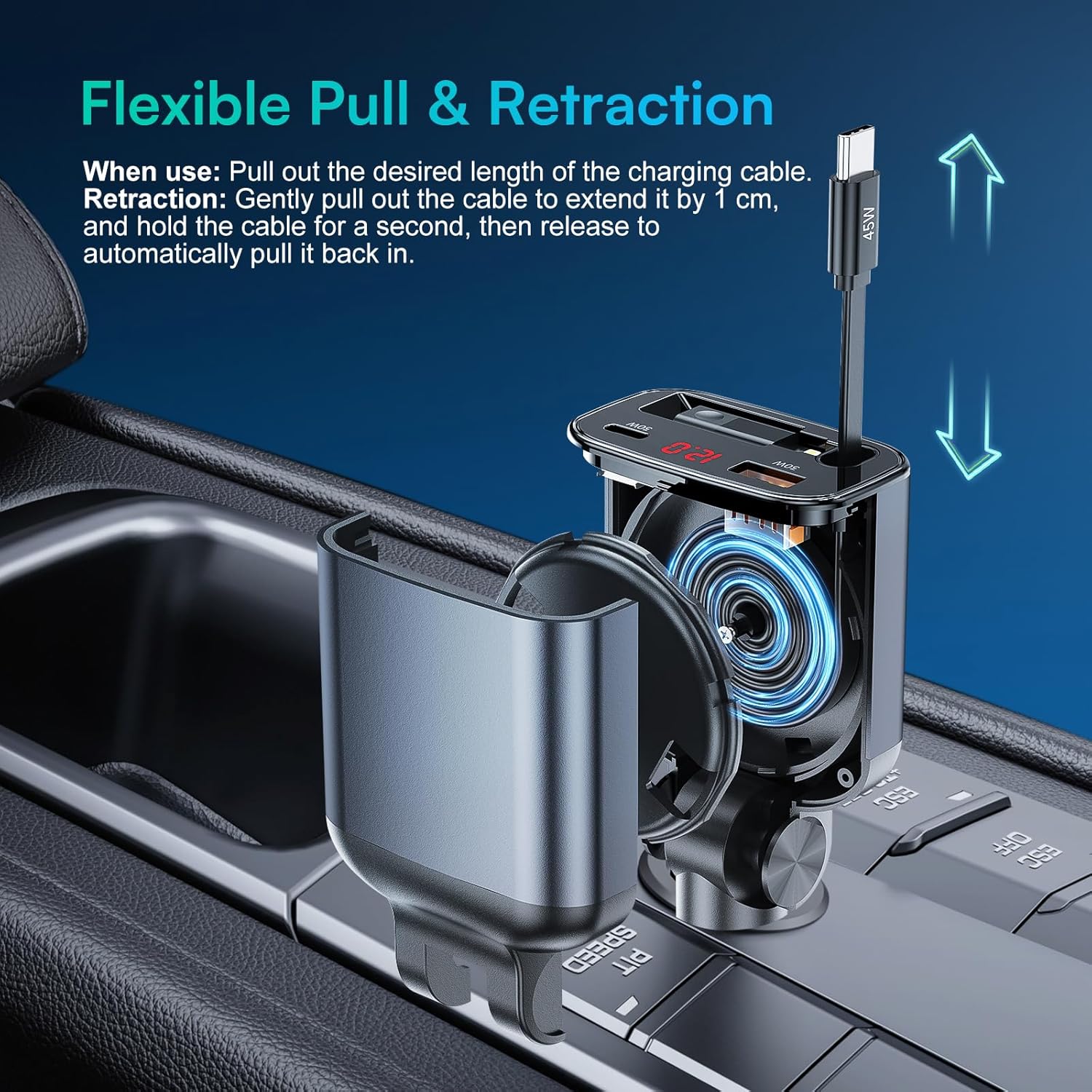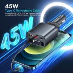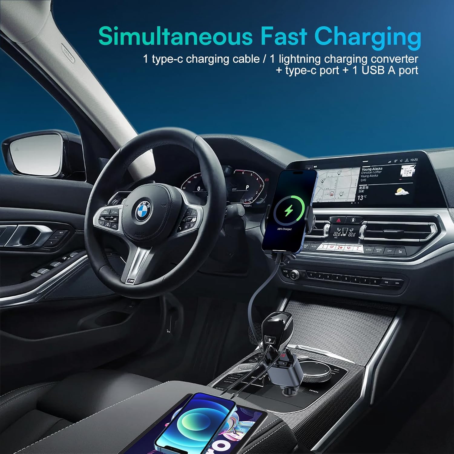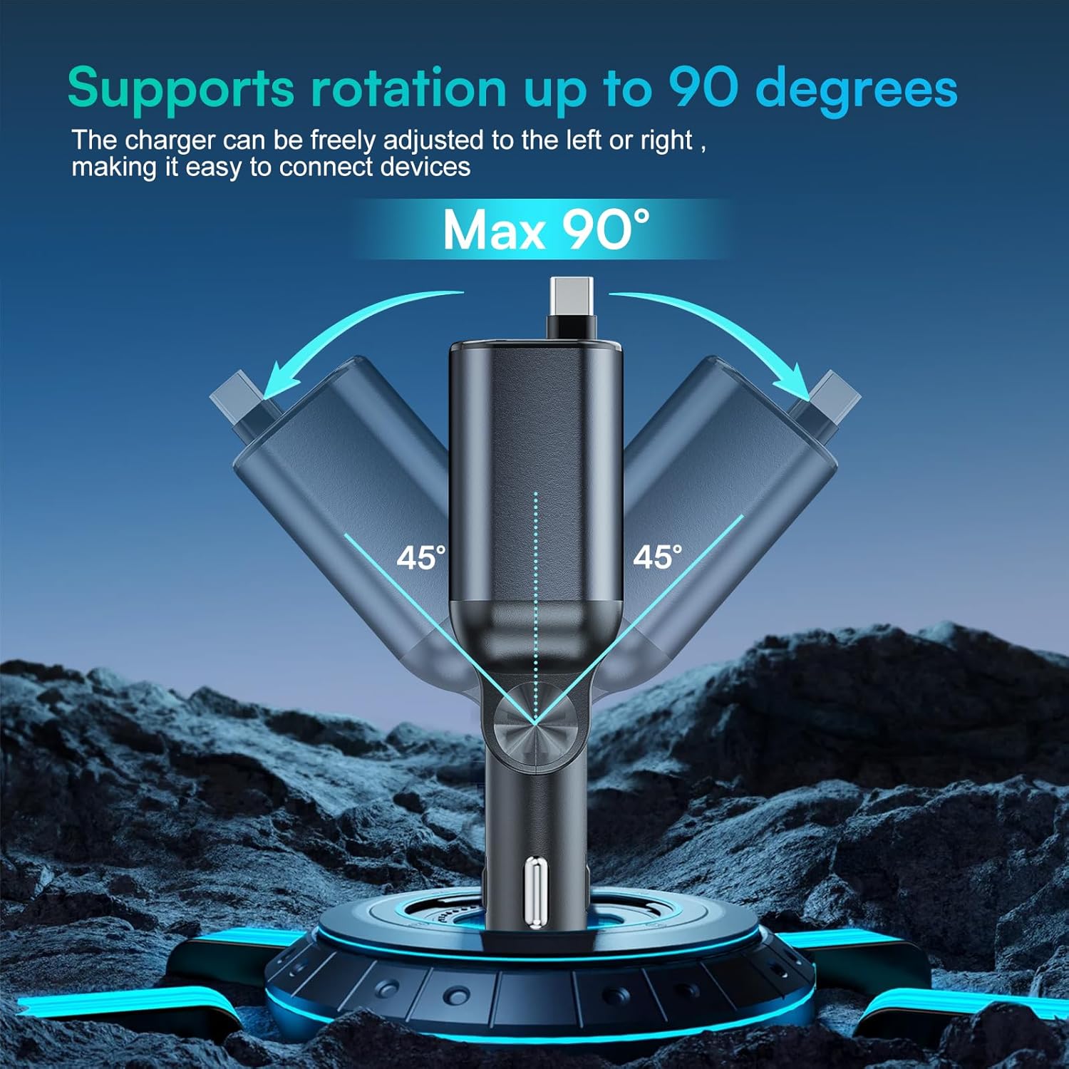【Telescopic Vehicle Charger】 3 in 1 retractable vehicle charger can pull out cables less than 80cm. Vehicle charger includes a retractable Type-C cable and a magnetic lightning charging port. Retractable cable can be automatically removed from internal memory, keeping clean and tidy, without tangling the cable, easy to control and use.