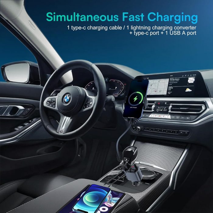 【3-Way Independent Ultrafast Charger】 45W Type-c, 27W Lightning Charging Port, 30W PD and 30W QC3.0, which can meet the super fast charging needs of three devices at the same time, are ideal choices for daily car travel.