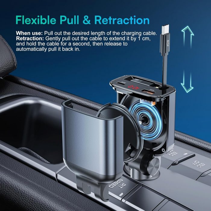 【For Various Vehicles】The car charger fast charging for vehicles are widely compatible and suitable for various vehicles. Telescopic vehicle chargers are suitable for conventional 12V – 24V vehicles, plug and play, robust and durable, and will not bounce even if driving on rough roads.