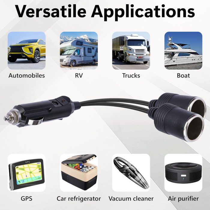 Versatile Applications: Widely compatible with 12V-24V DC power supply for cars, RVs, trucks, boats and many other vehicles, this car outlet splitter can be used to connect GPS, car recorder, car refrigerator, vacuum cleaner, air purifier and other low power devices, making it ideal for traveling and camping
