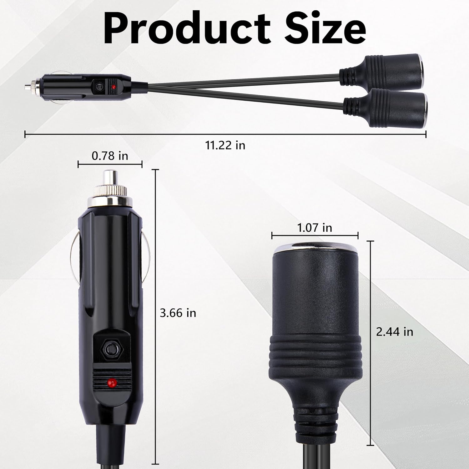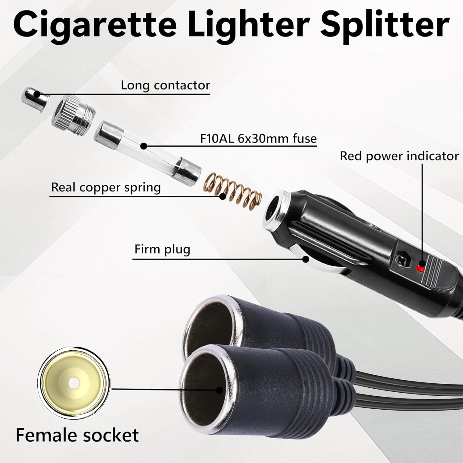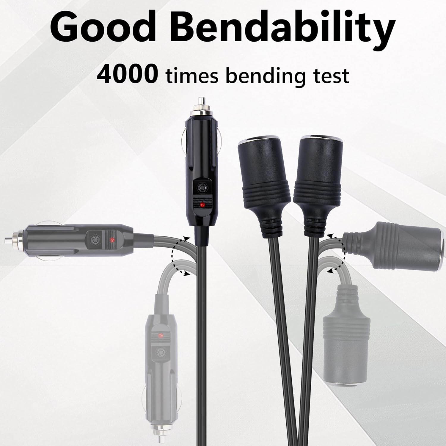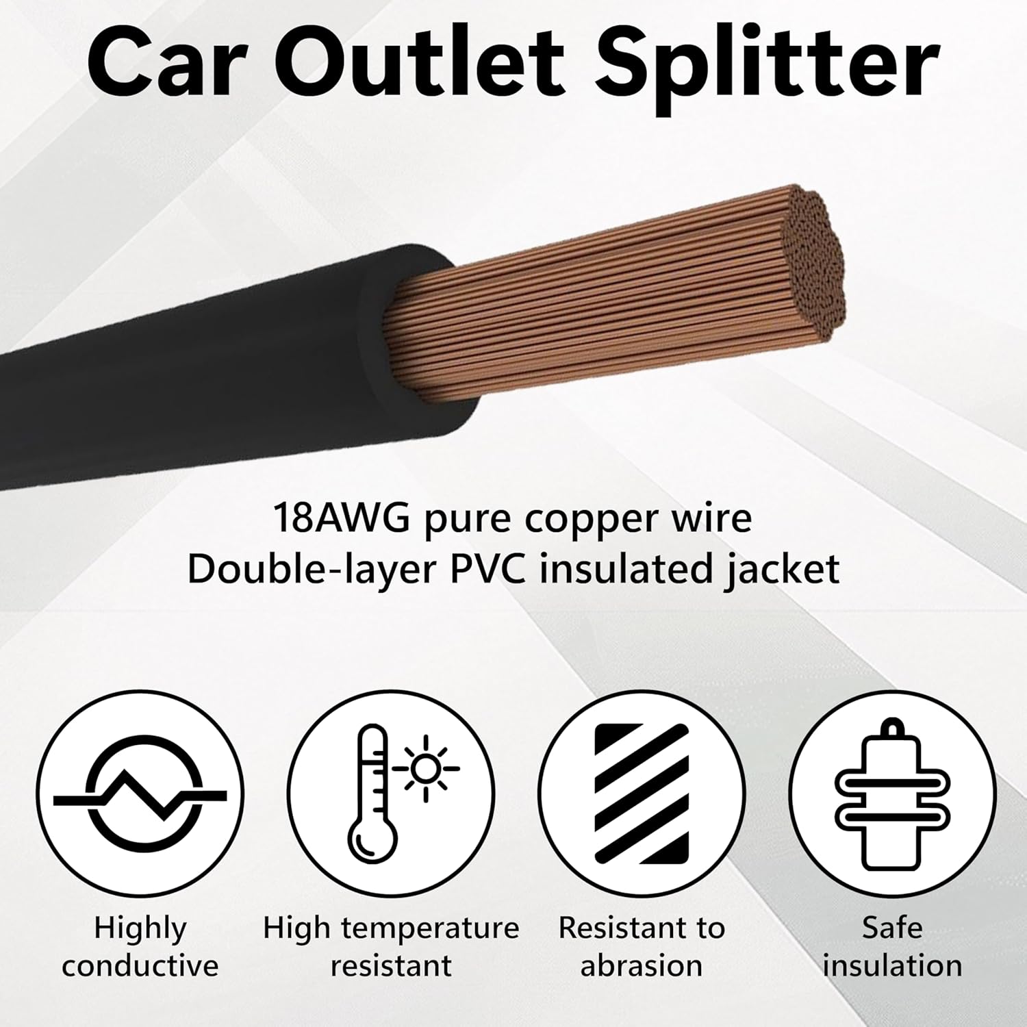 Superior Material: Made of 18AWG pure copper wire, this heavy duty cigarette lighter splitter 2 socket provides a stable current. The double-layer PVC insulated sheath with heat resistance up to 105° ensures safe and durable use, providing reliable power to your devices