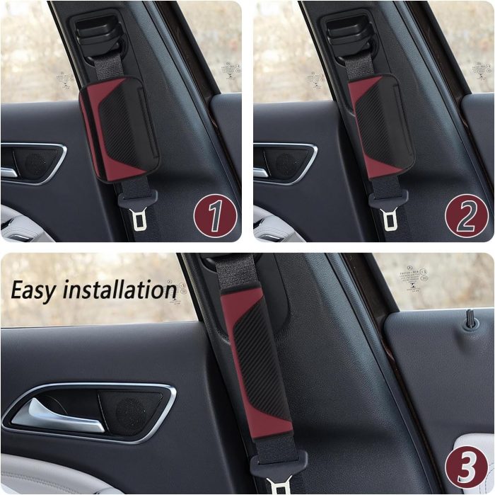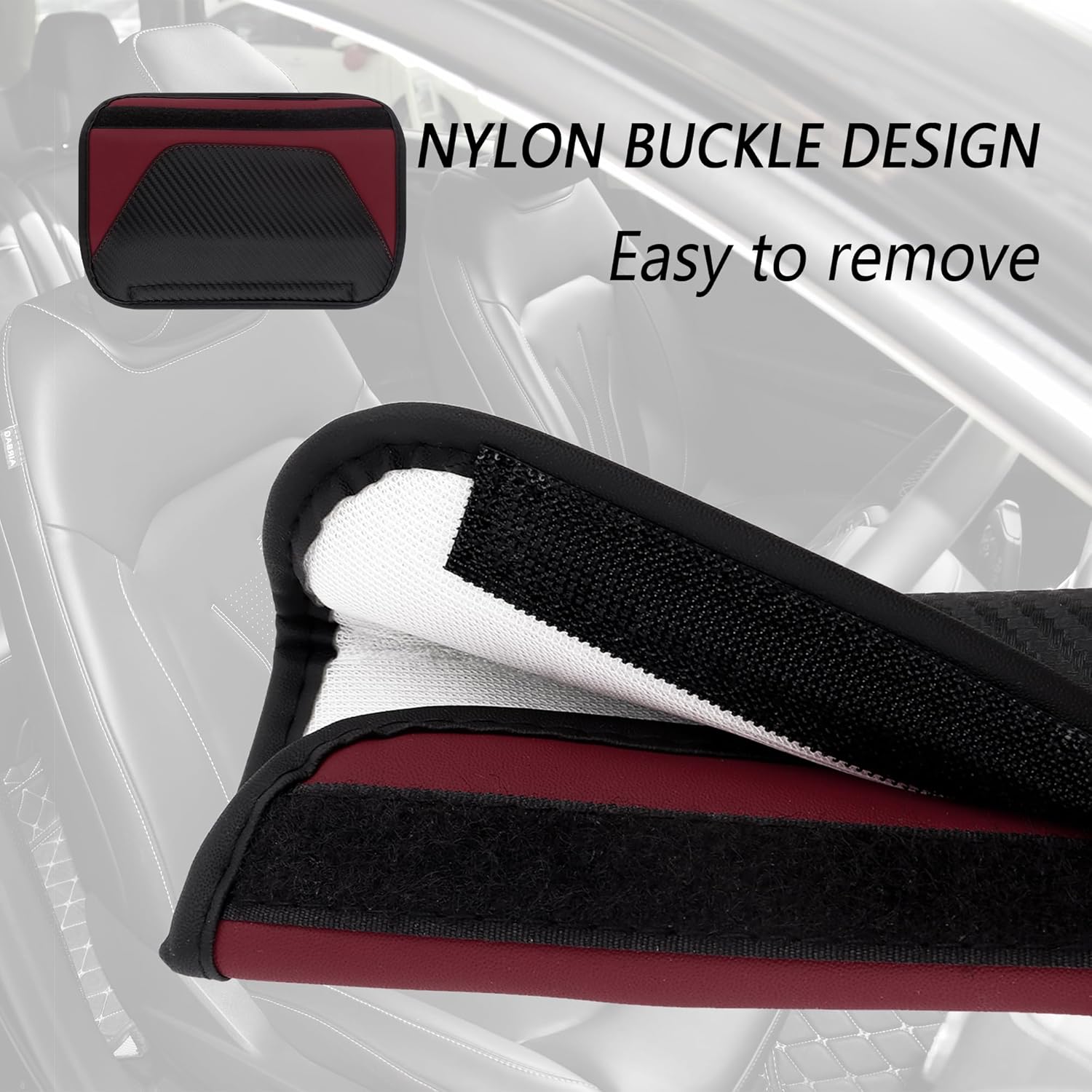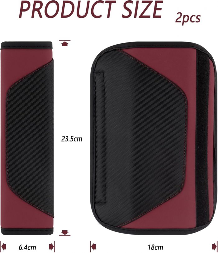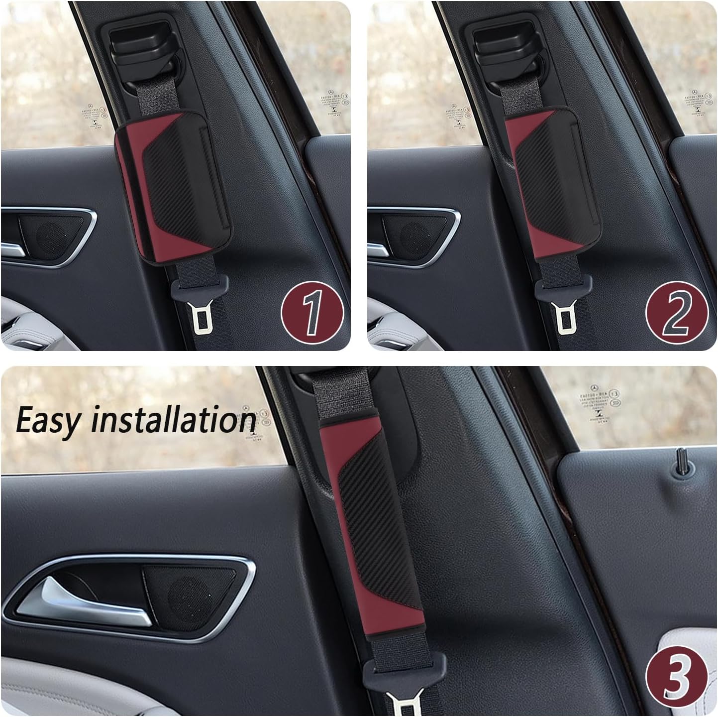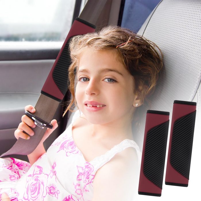 2 Pieces Car Belt Protector for Children, Carbon Fibre Car Belt Pad to Protect Shoulders and Car Decoration, Universal Car Accessories Interior Belt Cover (Bordeaux)