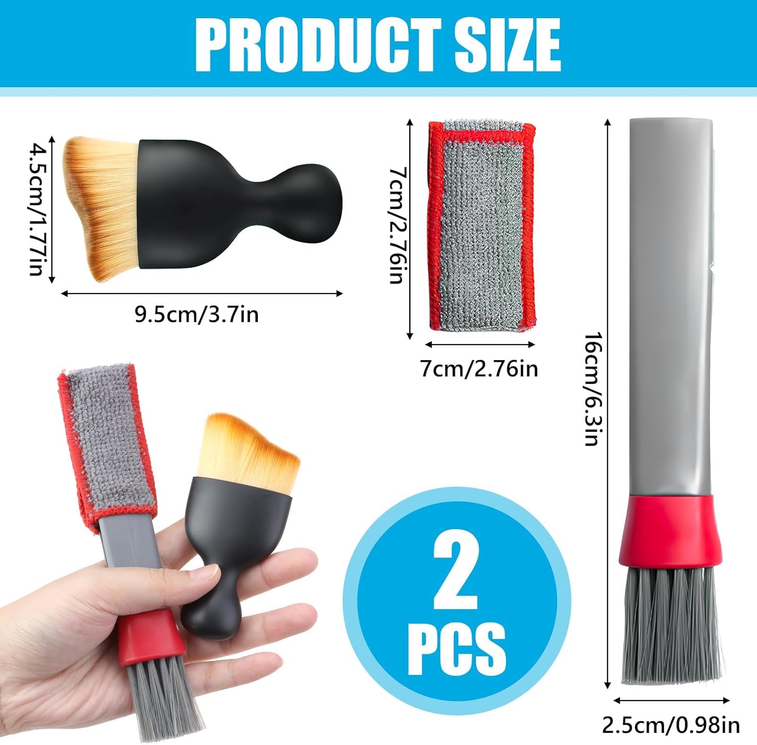 2 x Cepillo de Limpieza para Coche, Ideal para Detailing y Limpieza Interior de Vehículos. Este cepillo es para limpiar en casa y en la oficina, para limpiar persianas y teclados (A)