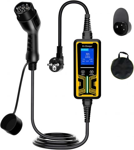 Cable de carga Tipo 2 3.5KW 1-fase ajustable 8-16A estación de carga móvil/cable de carga Wallbox Tipo 2 con pantalla LED/bolsa de almacenamiento para vehículos eléctricos y híbridos enchufables,5m