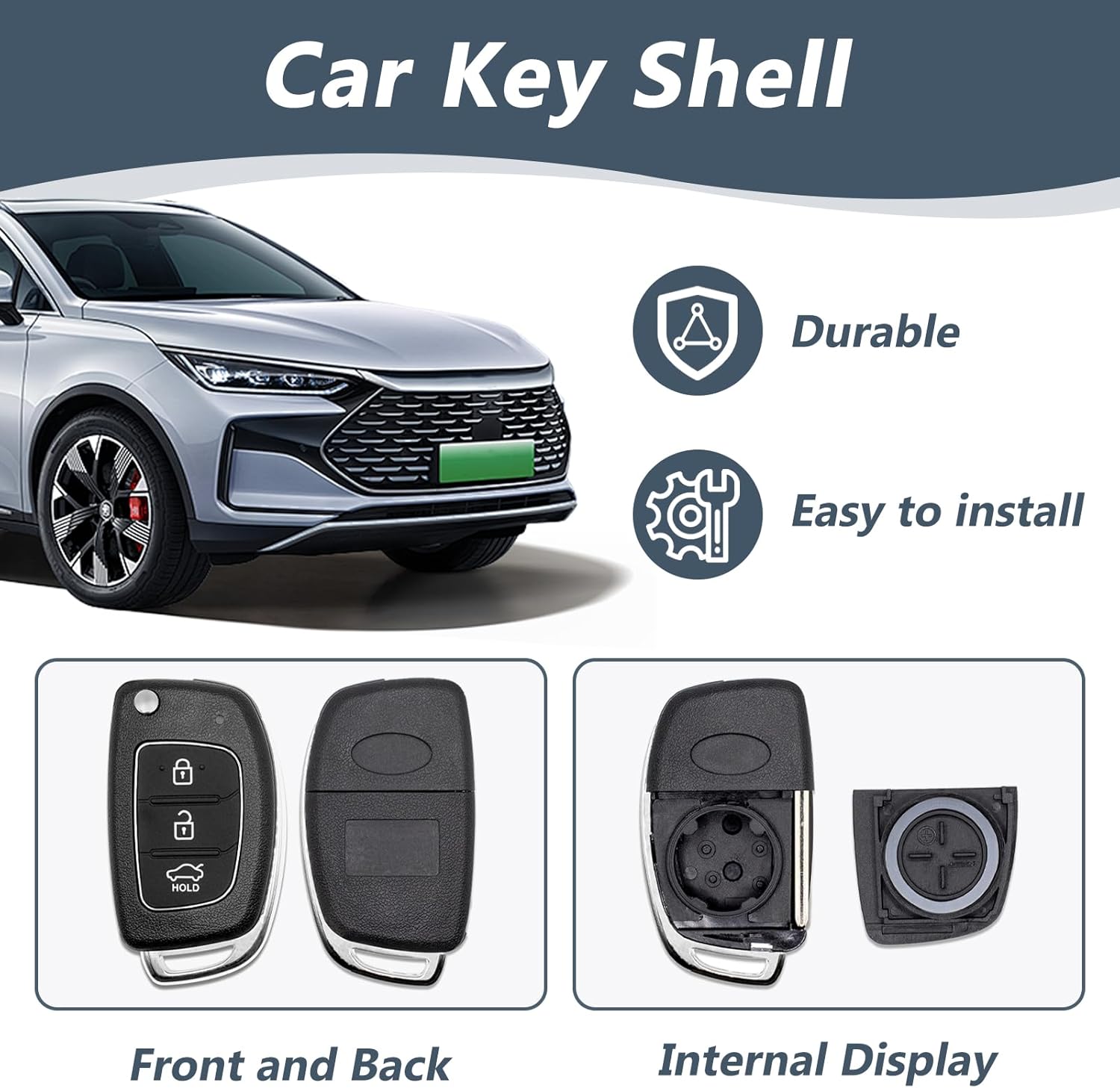 3 Button Car Key Shell Compatible with Hyundai i20 i30 i10 ix20 ix30 ix35 Remote Control Replacement Shell with Space for Transponder Chip and Uncut Blade
