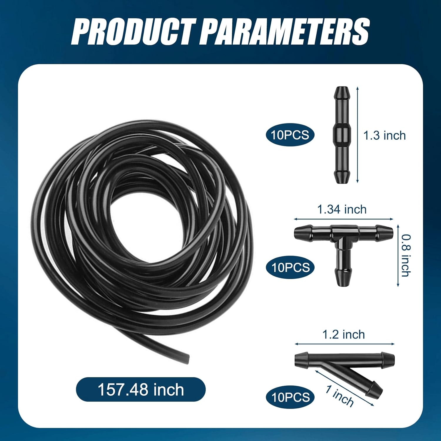 Package Included: This windshield washer fluid hose kit includes 1 x 13.1Ft windshield washer fluid hose and 30 windshield wiper hose connectors, including 10 Y-shaped, 10 I-shaped and 10 T-shaped. Sufficient quantity to meet your use and replacement needs, no need to worry about connector damage affecting the use of clean wipers.
