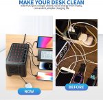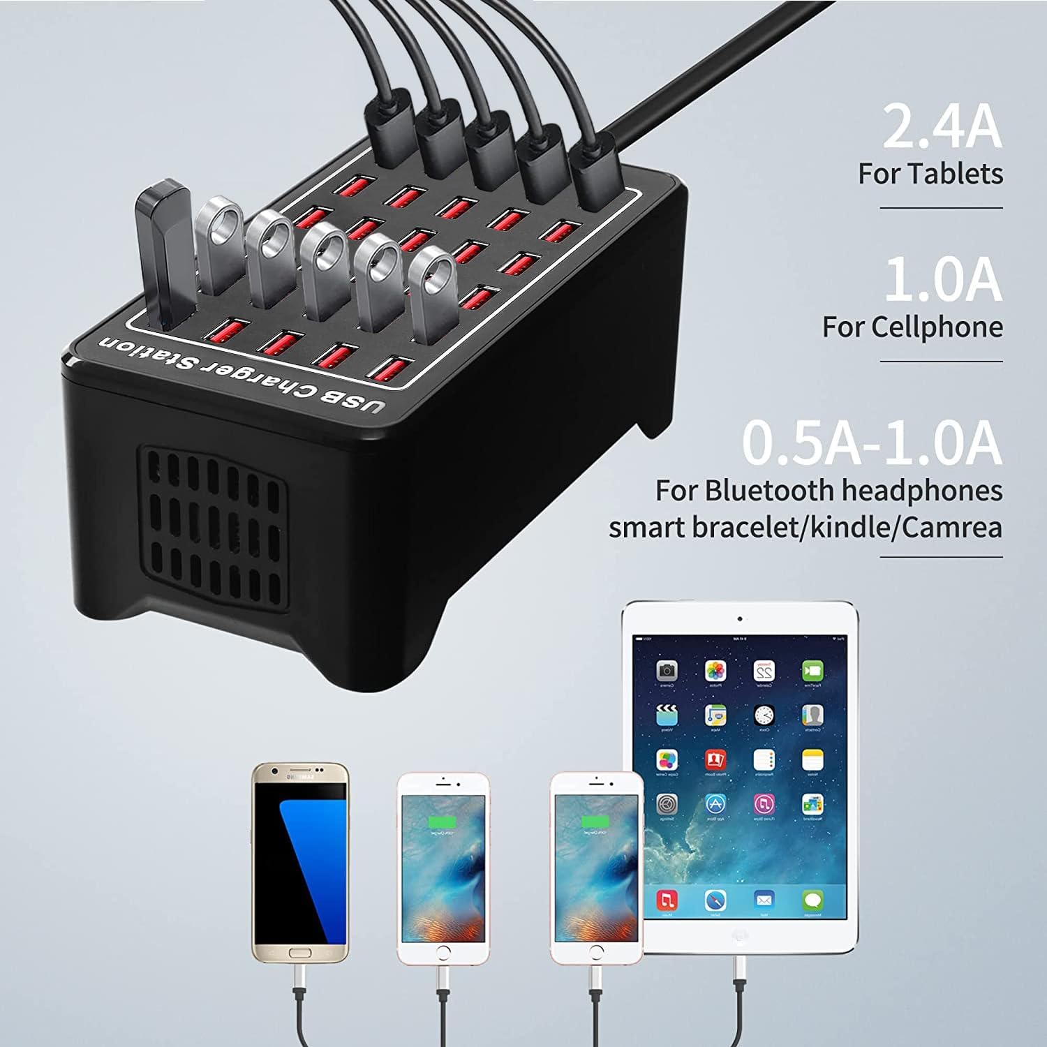 ⚡【Safe and Reliable to Use】The desktop USB charger is equipped with a smart chip, each USB charger interface has an independent chip and does not interfere with each other. Provide over-current, over-temperature, over-voltage, short-circuit, overload and critical voltage protection.The has a built-in safety fan + two-channel heat dissipation made of aluminum sheet, strong heat dissipation, and effectively protect the safety of equipment and battery.
