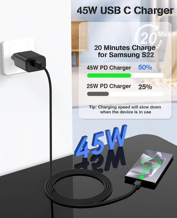 ⚡️【45W Fast Charging】: Samsung charger features super fast charge 2.0 with a maximum output of 45W and uses PD3.0 to provide the most efficient charging. Samsung Galaxy S24 ultra super fast charge charge from 0% to 60% in just 30 minutes, faster than other 25W/15W chargers, saving you more time.