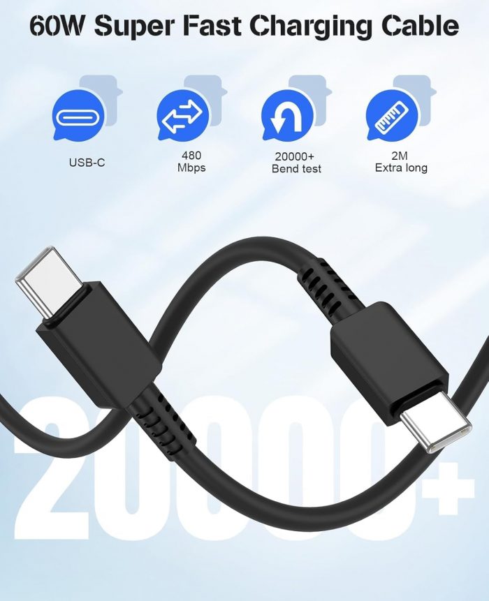 45W Fast Charging Charger 2M+1M, USB C Charger with Type C Cable, Type C Plug for Samsung Galaxy S24/S25/S23/S22/S21 Ultra/S20/S20+/Note 20/10/A73/A53/A52/s10/s9