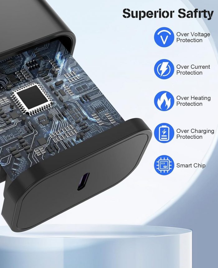 ⚡️【Safe & Reliable】Samsung charger 45W has multiple safety protection measures such as over-voltage, over-current, short-circuit, low voltage and over-temperature protection. It provides comprehensive protection for your device, including automatic ic recognition and smart charging protection features. When the battery is 100% charged, it will automatically stop charging to ensure the safety and long-term use of the device.