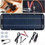 VERSATILE INSTALLATION OPTIONS Simply plug the charger into your vehicle’s 12-volt light socket and place the panel in a place with plenty of sunlight. Alternatively, you can use the included alligator clips to connect the charger directly to the battery. The solar panel can be mounted to the windshield using the provided suction cups or secured to the visor with straps.