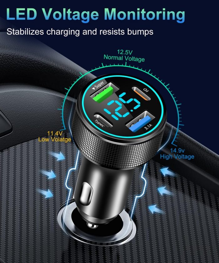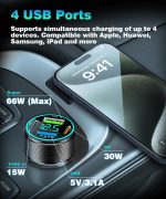 【4 USB Ports】 The 12V 4-port USB adapters are automatically equipped with four charging ports, including qc3.0 [66w], PD [30w], Type-C [15w] and 3.1a USB 5V/3.1a, which can charge four devices at the same time. Multi-port vehicle chargers can meet the needs of households.