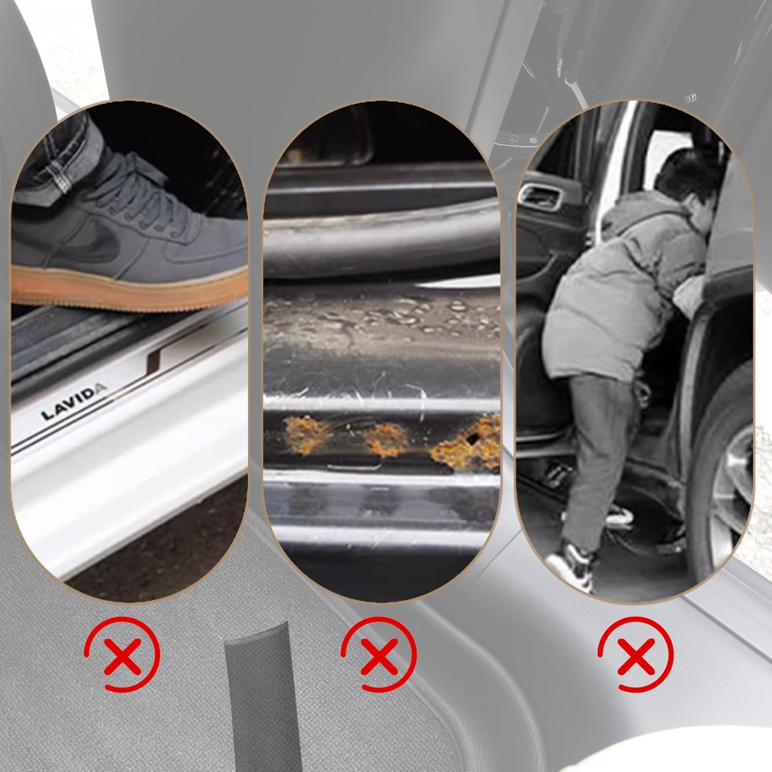【All Weather Protection】Tesla sill guard not only protects the door sill from scratches, abrasion, bumps and stains, but also an outstanding interior accessory. Suitable for all weather and road conditions, protect your car from mud, sand, rocks, rain, snow, salt and other debris.