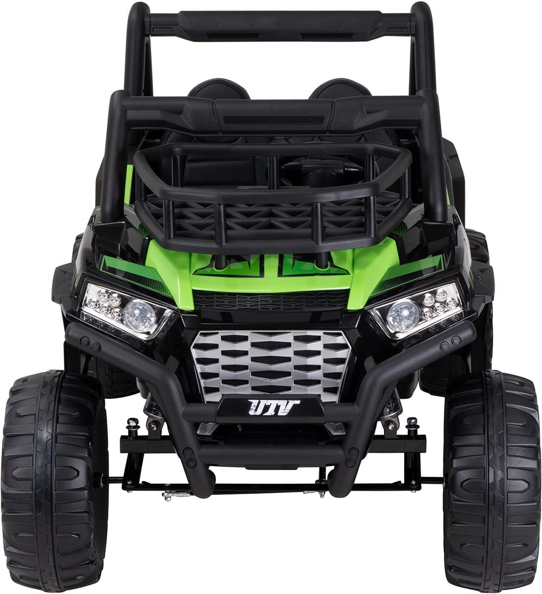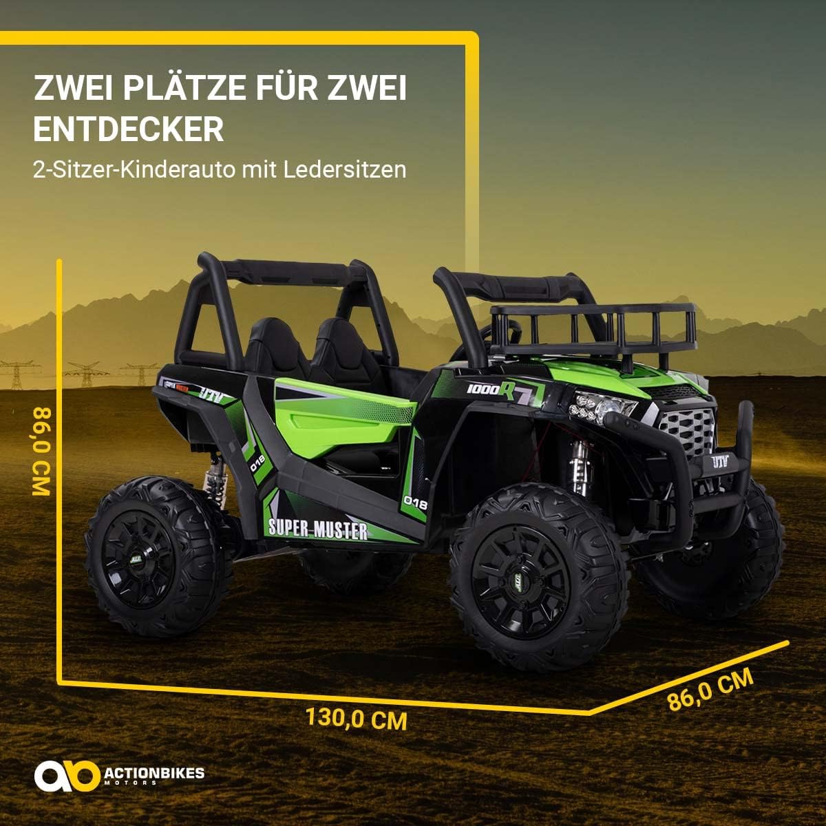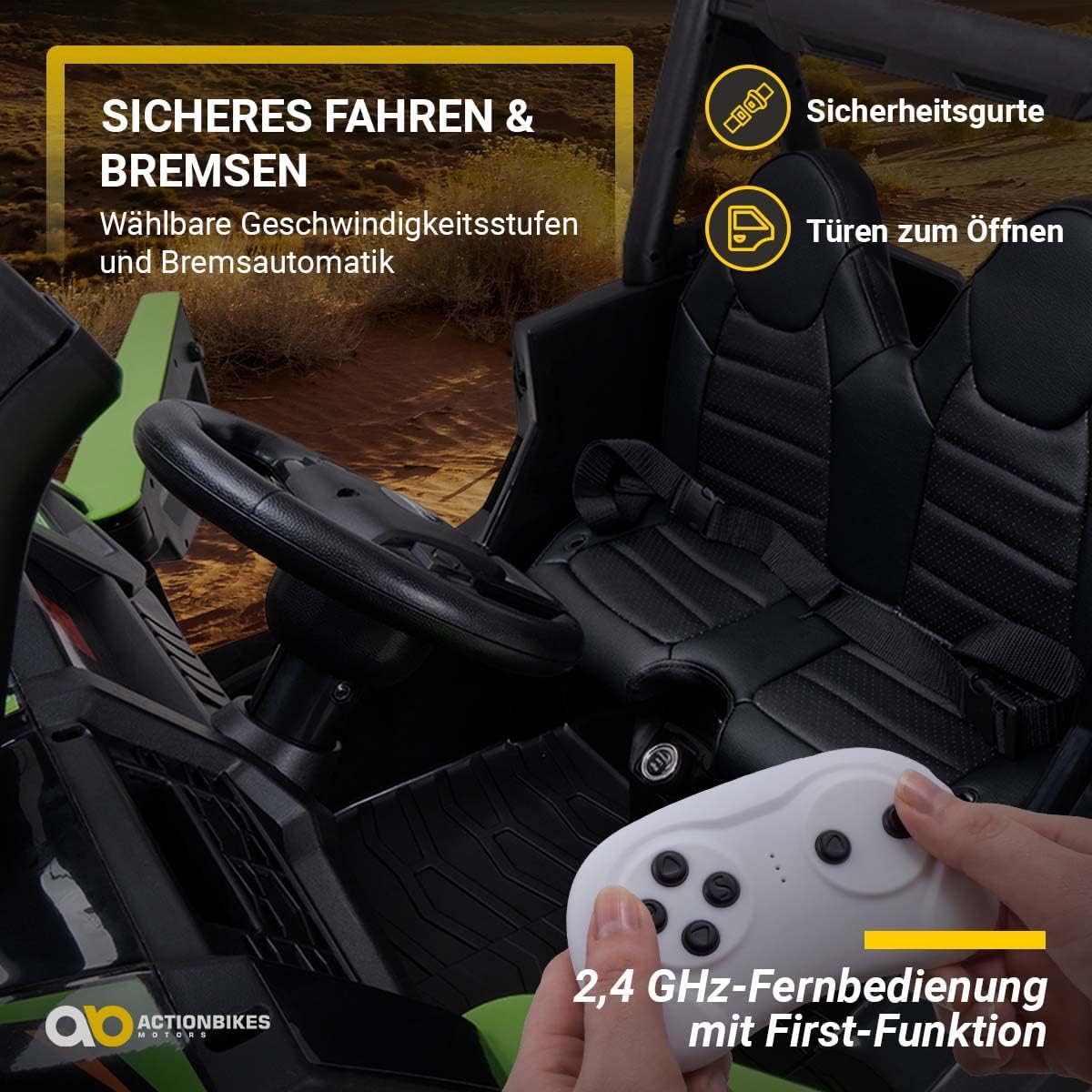 Actionbikes Motors Jeep UTV Explorer Coche eléctrico para niños 2x200W Motor 2 plazas 2.4GHz Control remoto Neumáticos con anillo de goma suave Faros LED (Negro/Verde)