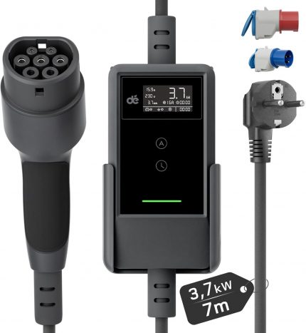 PORTÁTIL: Muy fácil de transportar con una sola mano, es adecuado para una variedad de modelos de automóviles, adaptador de 32 A, fácil de usar para el hogar y estaciones de carga, ahorra costos. También es conveniente para viajar.
