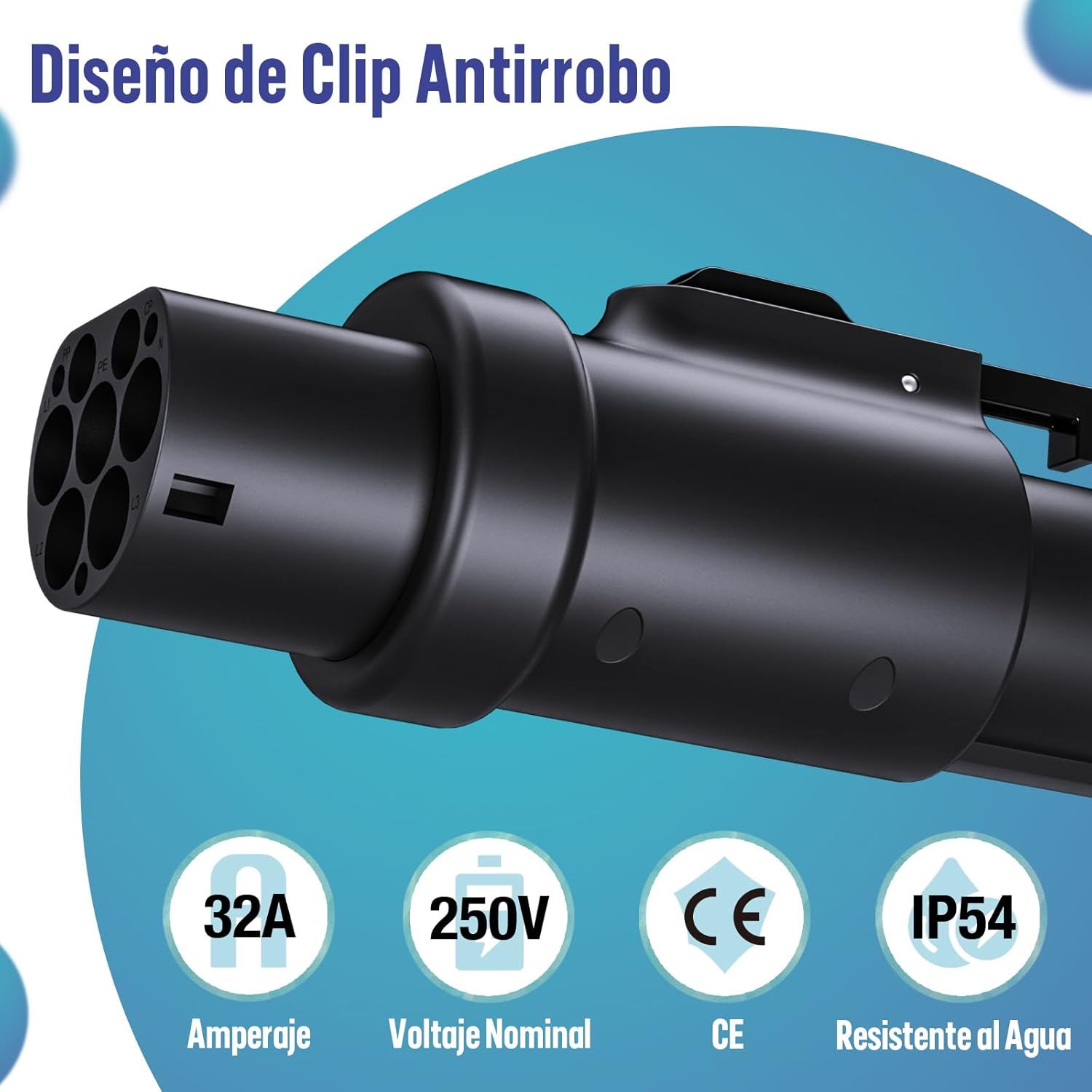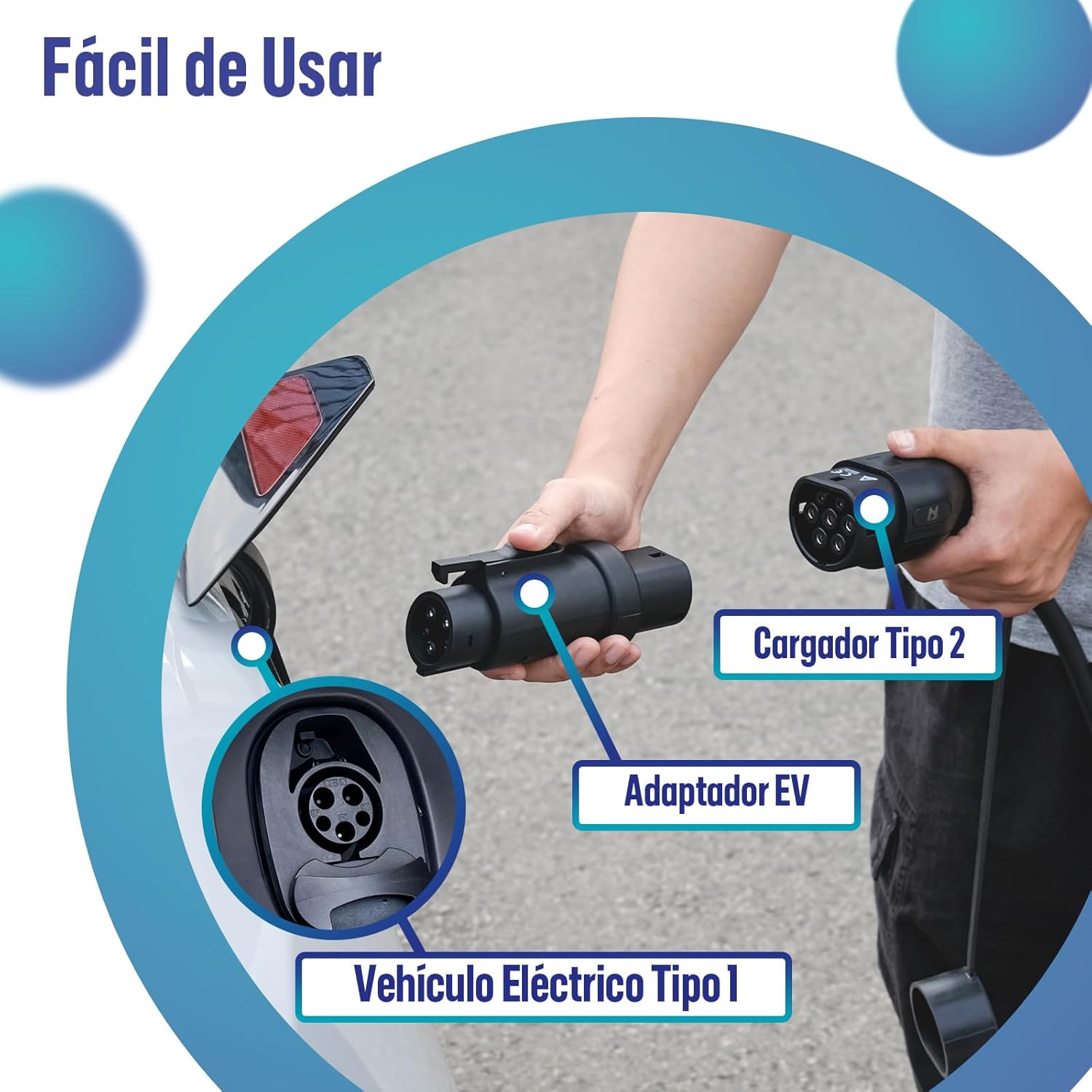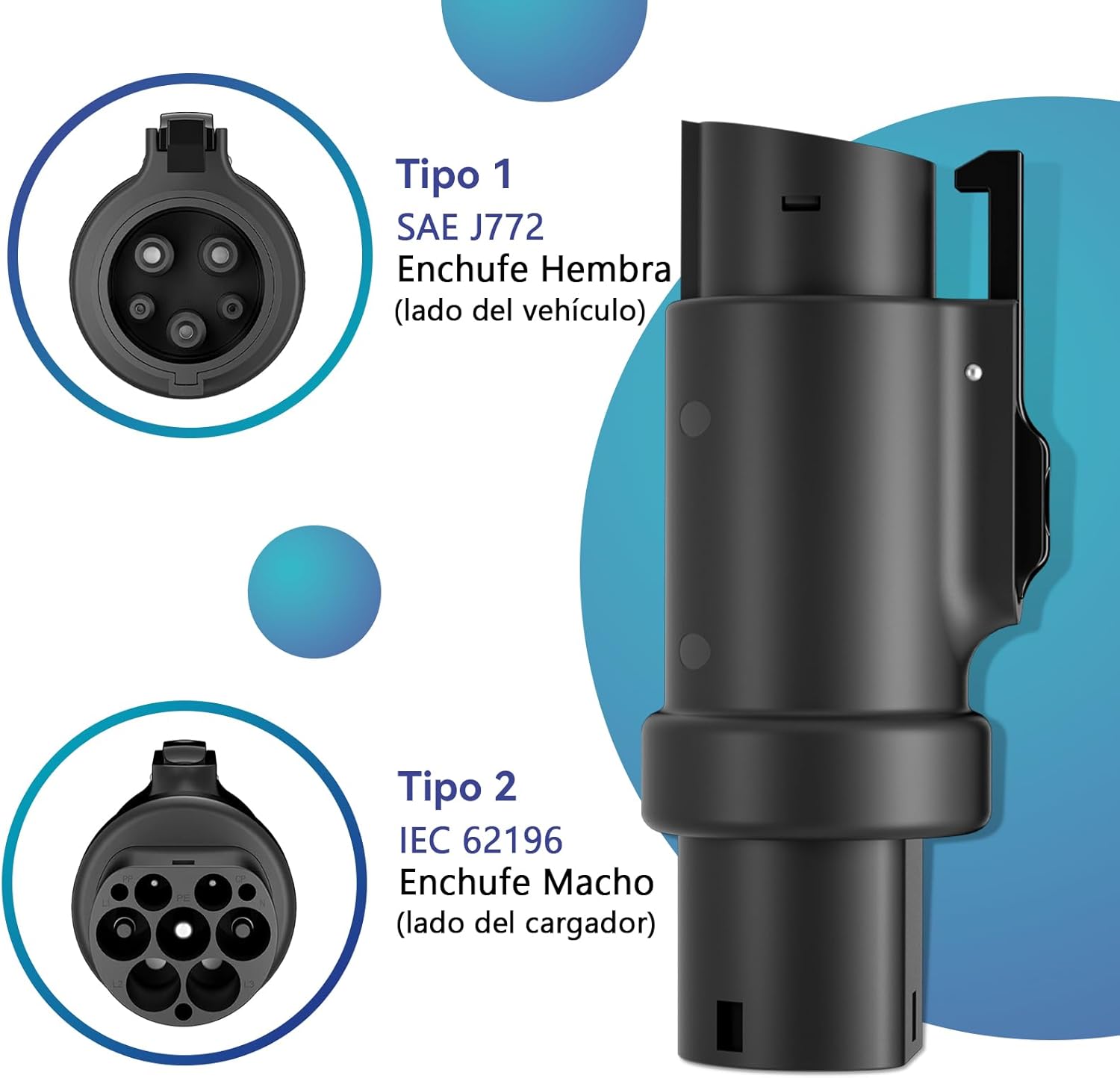 COMPATIBILIDAD: Compatible con 32A, 16amp-32amp (32a max), adaptador ev adecuado para la mayoría de los vehículos eléctricos de Peugeot, Ford, Hyundai, Porsche, Fiat, VW y más. Compatible con la mayoría de los vehículos eléctricos Tipo 1 (SAE J1772) y automóviles híbridos Tipo 1.