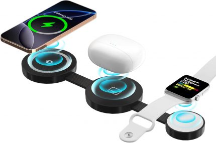 Cargador inalámbrico, estación de carga magnética 3 en 1, cargador inalámbrico plegable, compatible con iPhone 17 16 15 14 13 12 Pro Max Plus, estación de carga de viaje para Apple Watch y
