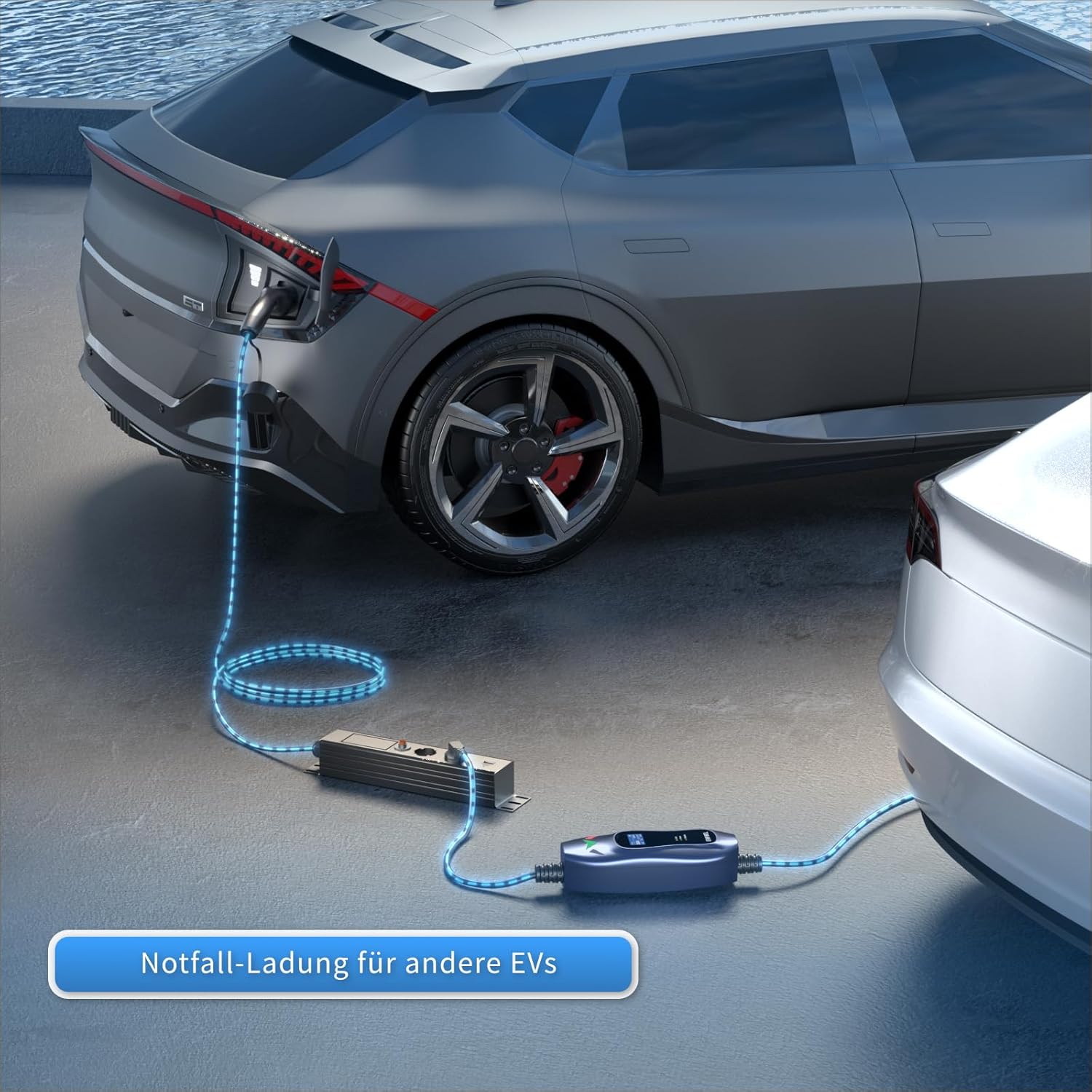 Dé Cargador de Coche Eléctrico (3,68kW, 6-16A, 10m) Cargador EV Tipo 2 con Enchufe Schuko, Cargador de Coche Eléctrico Portátil con Pantalla Digital Controlable con Modelo Y/3, GLC, MG4 y Otros BEV/PHEV