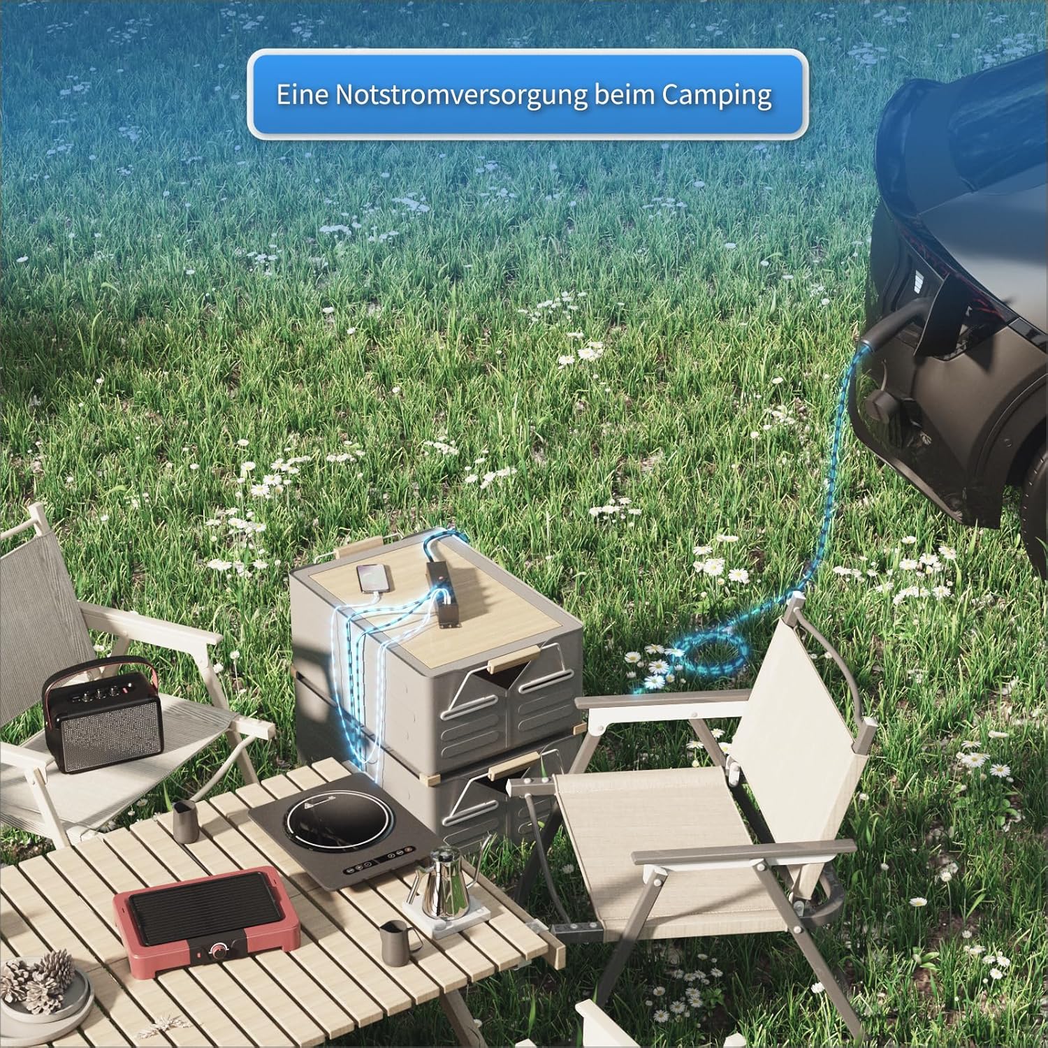 Fácil de usar: simplemente conecte el adaptador V2L al puerto de carga del Hyundai Ioniq 5 o Kia EV6, luego podrá alimentar y cargar varios dispositivos con la barra de alimentación incorporada.