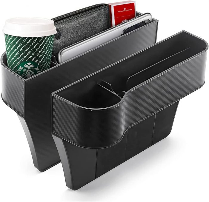 【Expand Space】: Our custom seat gap increases extra storage space for your front seat gap, you can organize your small items, such as smartphones, wallets, coins, sunglasses and so on. Two small pockets are ideal for cards and coins. It can help you organize your little things well, and let you get what you want at your fingertips. Say goodbye to messy seats.