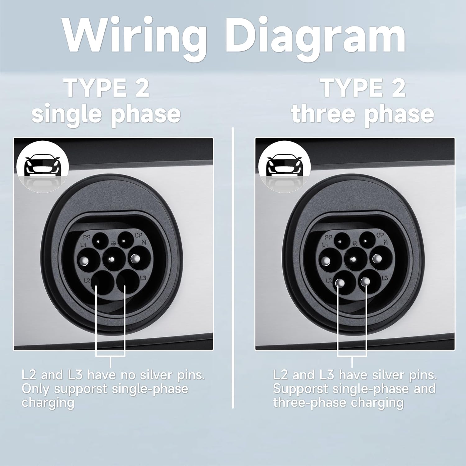 Wide Compatibility Compatible with most vehicles equipped with Type 2 connectors, such as ID.5, Model Y, Model 3, e-tron, etc.(Note: our products currently do not fit ID.3, ID.4 models)