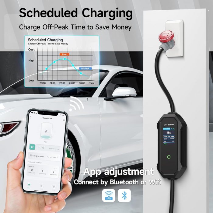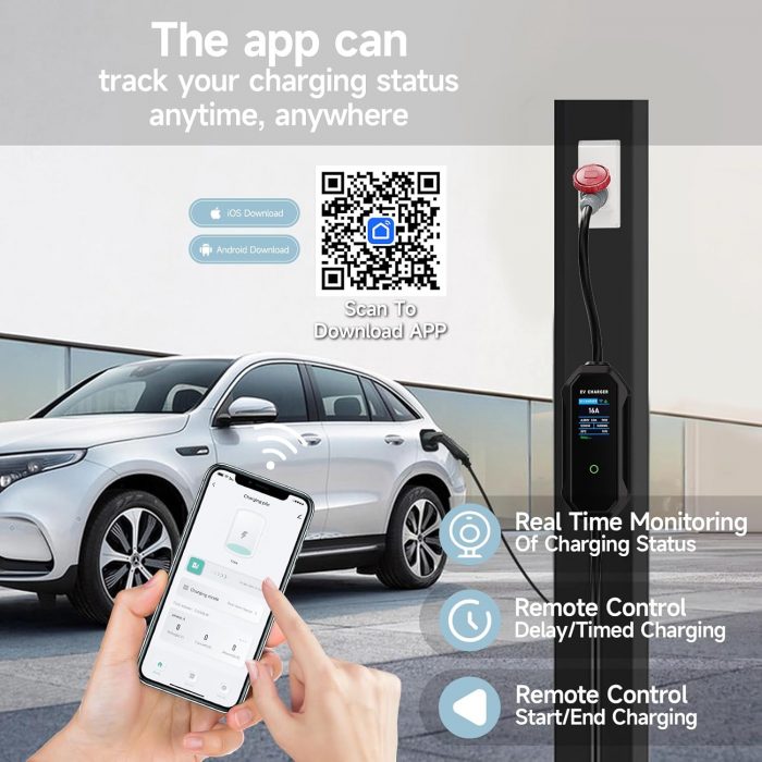 Smart APP Control:Whether you set the charging time, control the current (8A-16A), adjust the current charging status and set the delayed charging time (1h-15h), you can easily control the charging station through your smartphone.