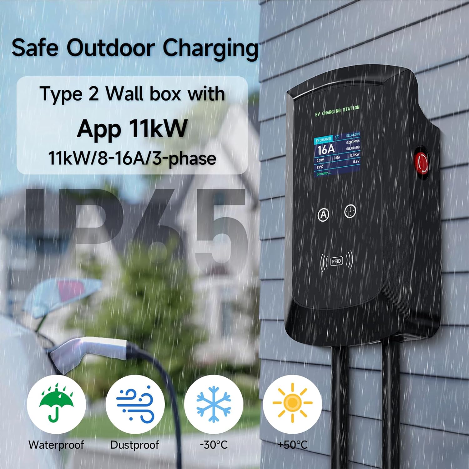 AFYEEV Cargador EV Tipo 2 de 11 kW, estación de carga doméstica Wallbox para coche eléctrico y soporte de cable Cable trifásico con enchufe CEE de 16 A para vehículos eléctricos y PHEV