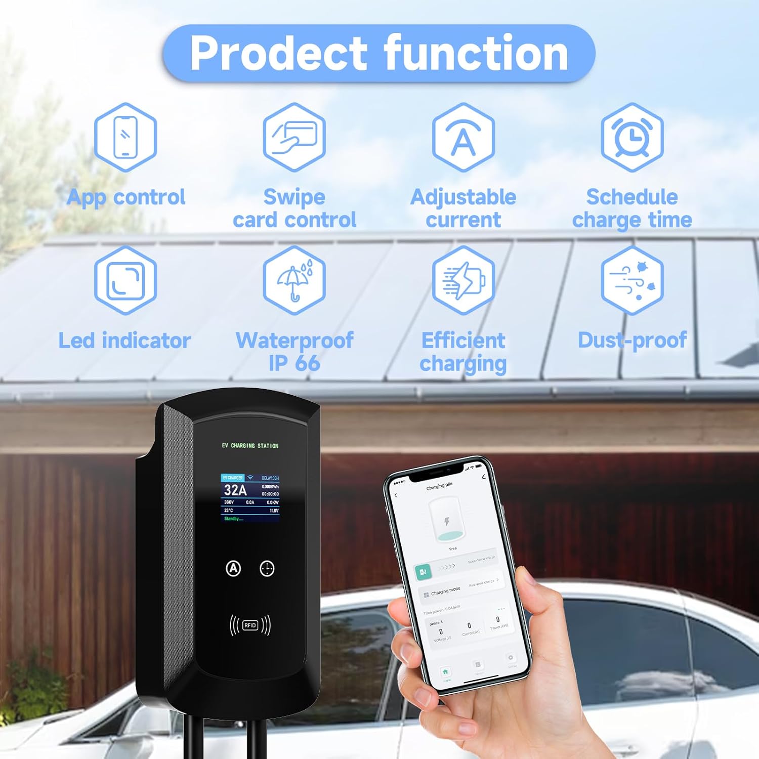 APP CHARGING Electric vehicle chargers remotely control and monitor charging status by connecting WIFI applications. You can manage the charger, set the charging time, charge cycle, and optimize the charger by setting the charging time in the low demand period.