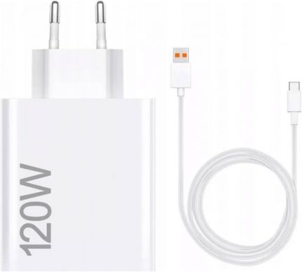 XIAOMI 120W HyperCharge Combo (Tipo-A) – Cargador de 120W, Puerto USB, Cable USB-C, Identificación de Dispositivo Inteligente, Blanco (Versión ES)
