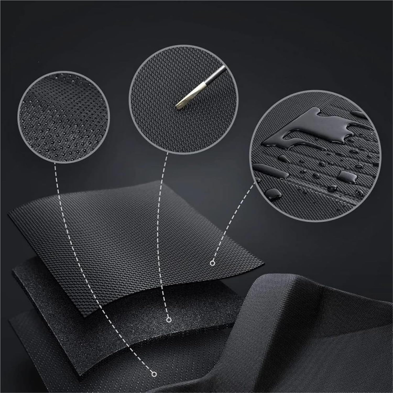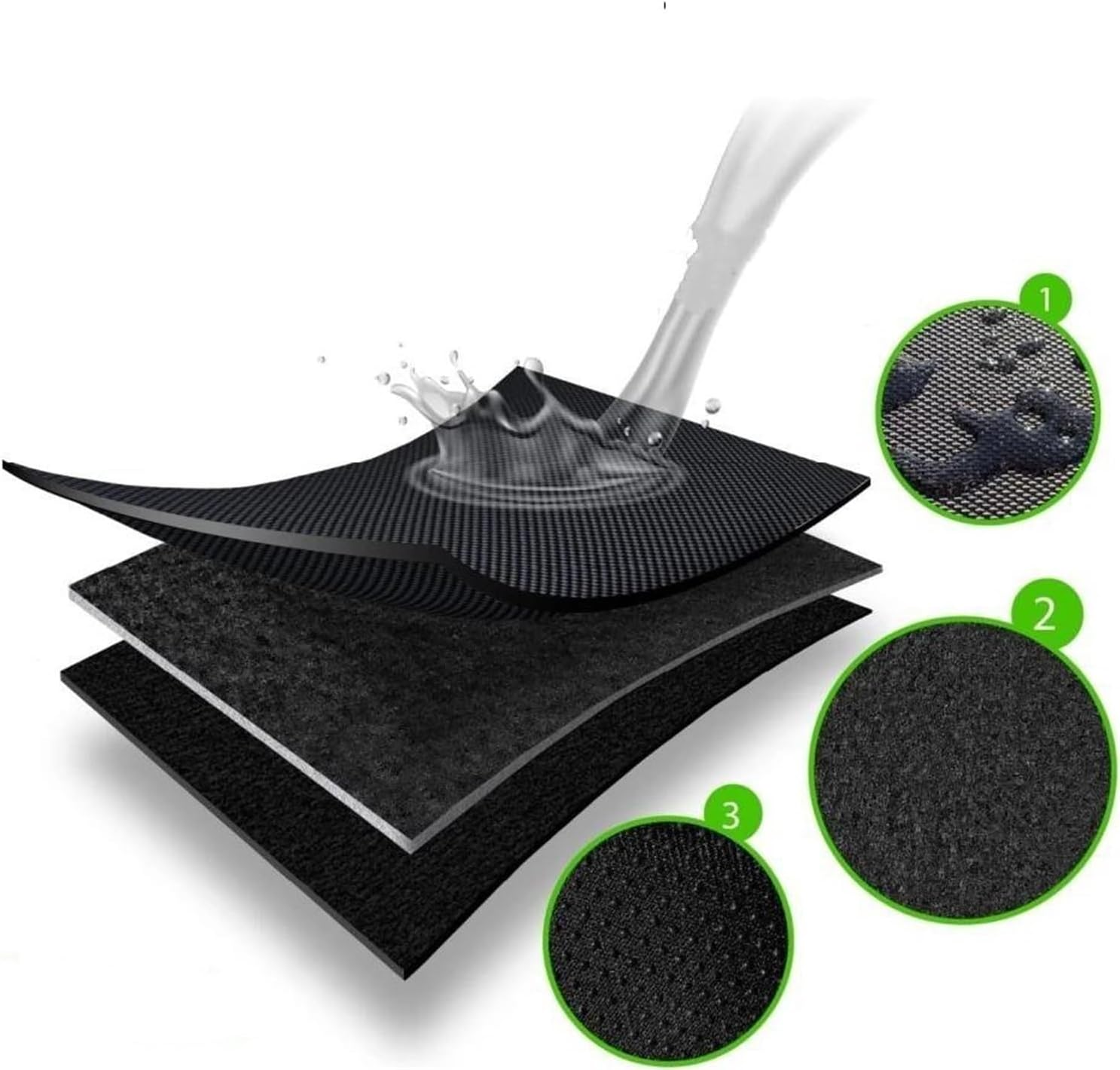 La alfombrilla, cuidadosamente diseñada, presenta una superficie texturizada para mayor protección contra salpicaduras y humedad, y sus tacos en la parte posterior la mantienen firmemente en su lugar para mayor estabilidad.