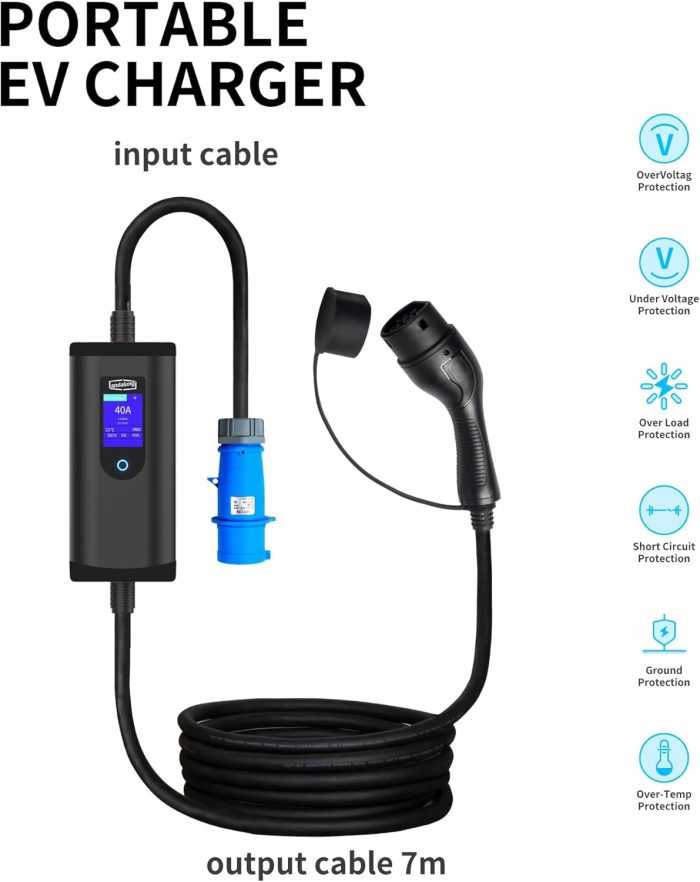 Robust CEE plug and 7 m high quality cable: Equipped with a robust CEE 32A plug and a 7 m cable, this charger ensures a stable and secure connection even with high charging demands. The durability of the plug and cord ensures a long service life, and is ideal for both home use and travel. The 7 meter cable offers flexibility in use and adapts to different charging requirements