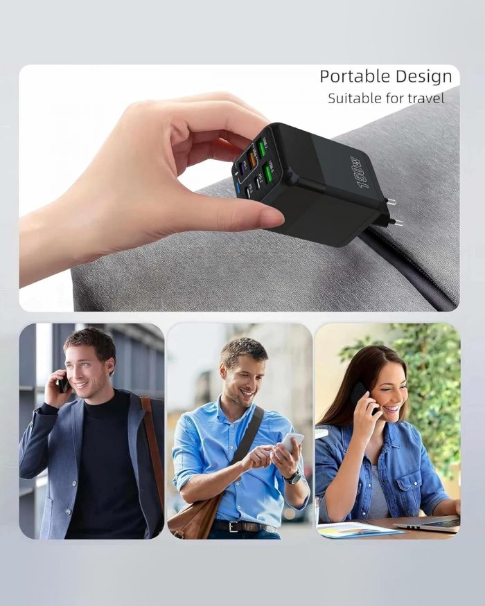 Liuhe Yiduo USB Charger – 6-port fast charging USB plug (three USB C ports + three USB-A ports) can quickly charge 6 devices at the same time, up to 150W. Choosing 150W Multiport Charger (ANDHOT) can minimize waiting time and free you from clutter of chargers with various interfaces.