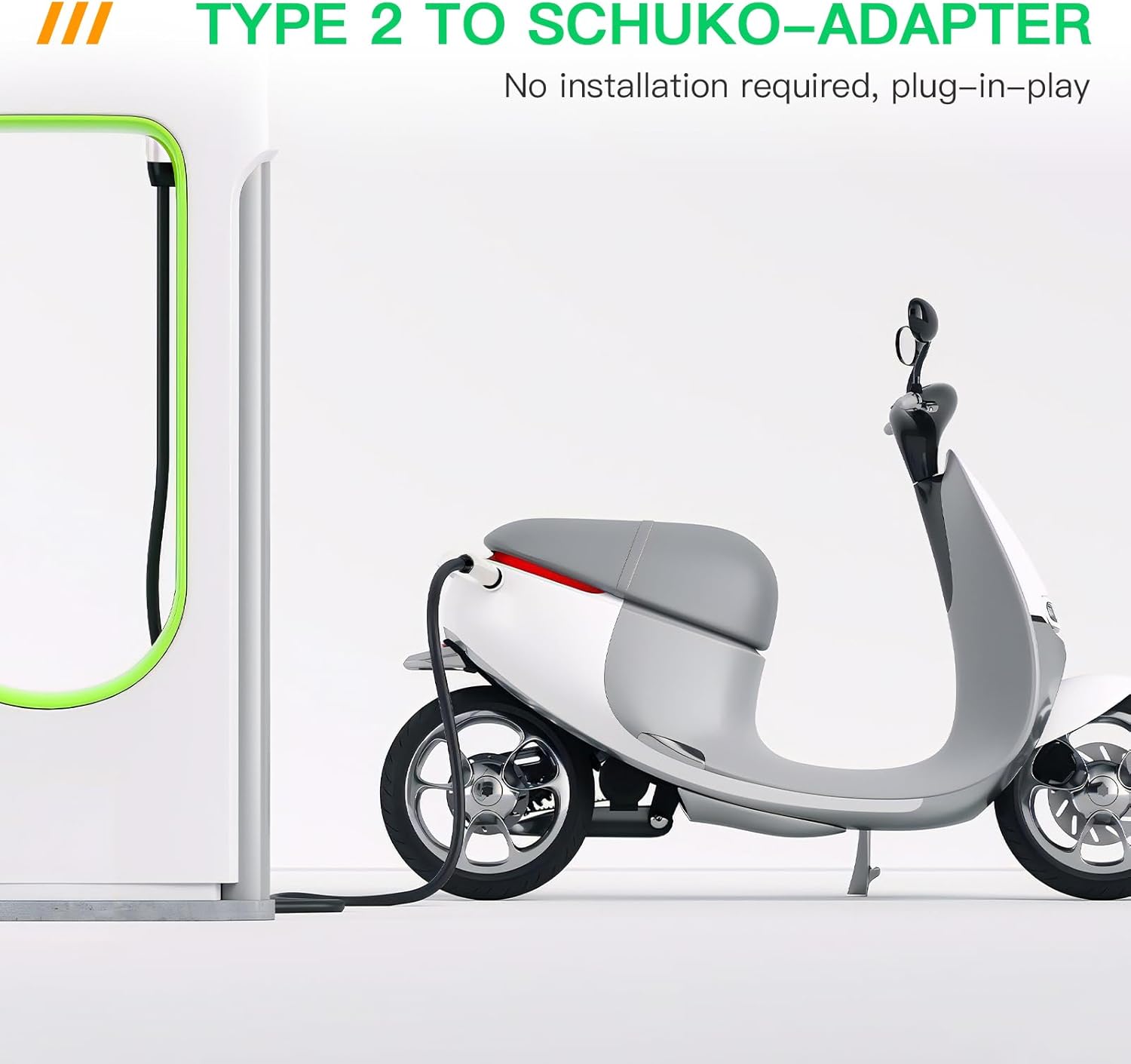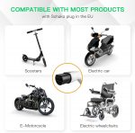 【Amplia compatibilidad】El adaptador tipo 2 a Schuko es compatible con todos los vehículos eléctricos estándar que utilizan el enchufe Schuko estándar (250 V) como enchufe de carga. Perfecto para la mayoría de productos con enchufe Schuko, como patinetes eléctricos, bicicletas eléctricas, motos eléctricas y sillas de ruedas eléctricas.